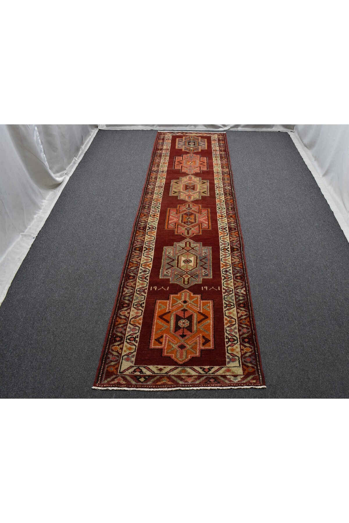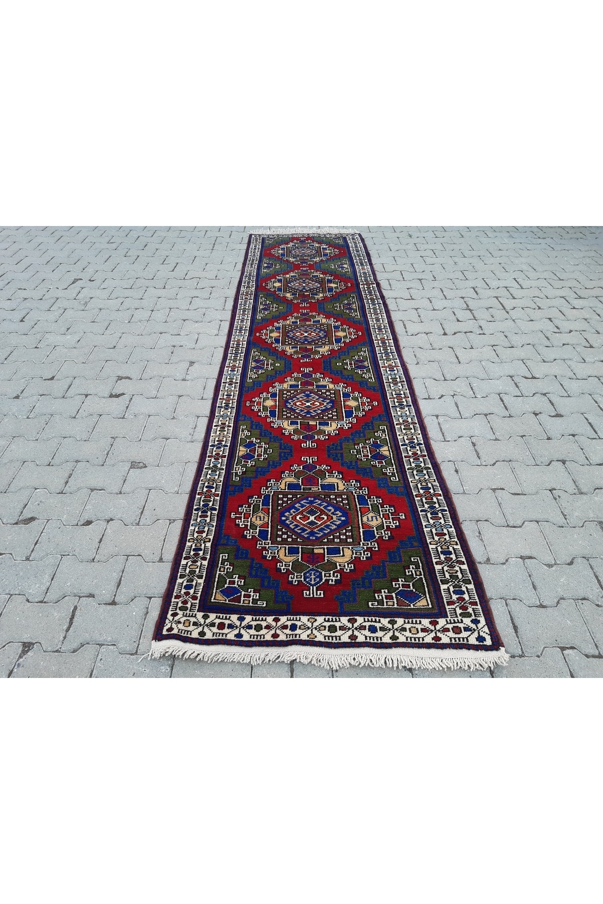 Vintage El Dokuma Şaheser Otantik Göbekli Herki Yolluk Yün Halı 5651 Vintage El Dokuma Şaheser Otantik Göbekli Herki Yolluk Yün Halı 5651 90 x 370