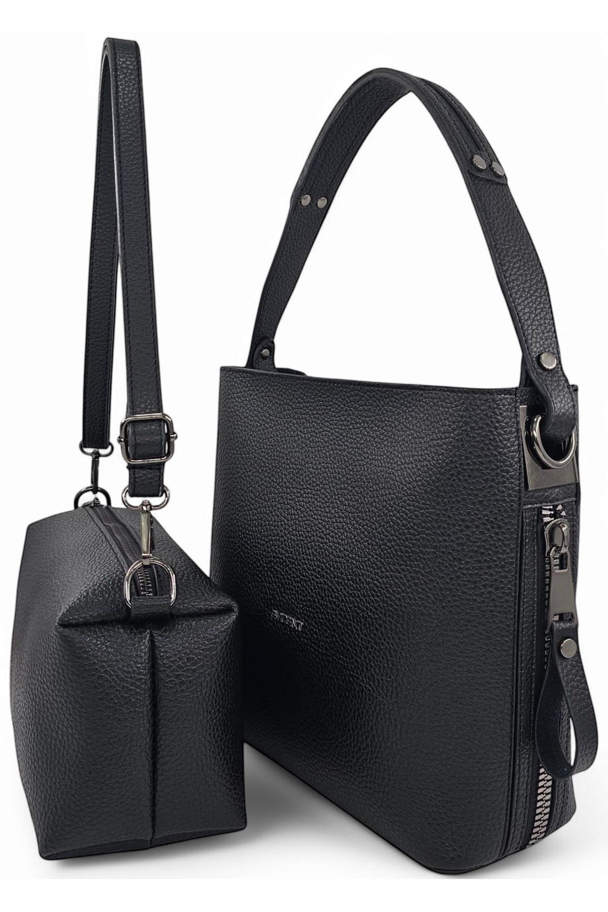 Siyah Fermuar Detaylı Yavrulu Kadın Omuz Çantası Siyah Fermuar Detaylı Yavrulu Kadın Omuz Çantası E-2025 Orta Boy