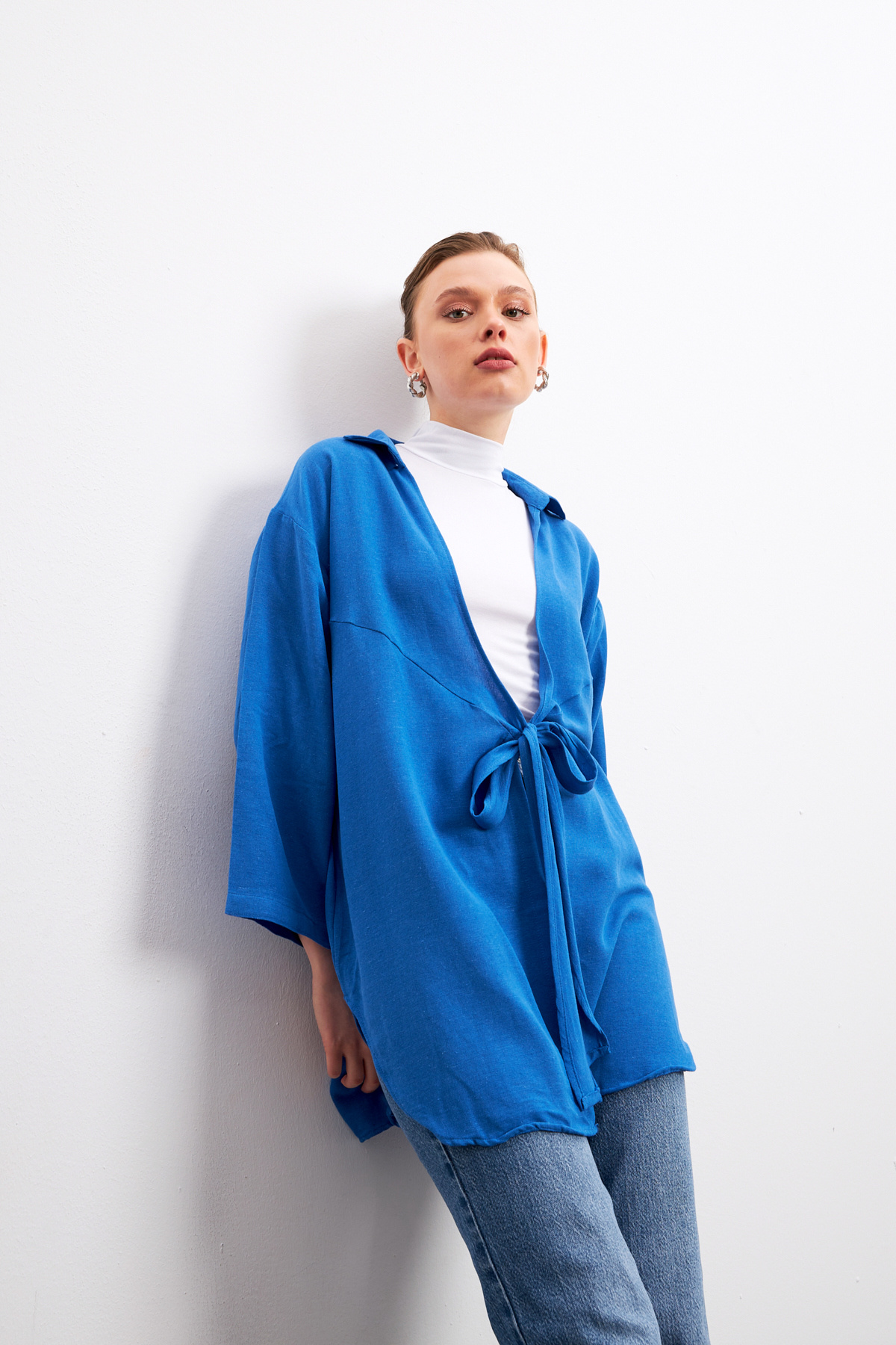 Mavi Flam Keten Kimono Gömlek Mavi Flam Keten Kimono Gömlek KİMONO100 Standart