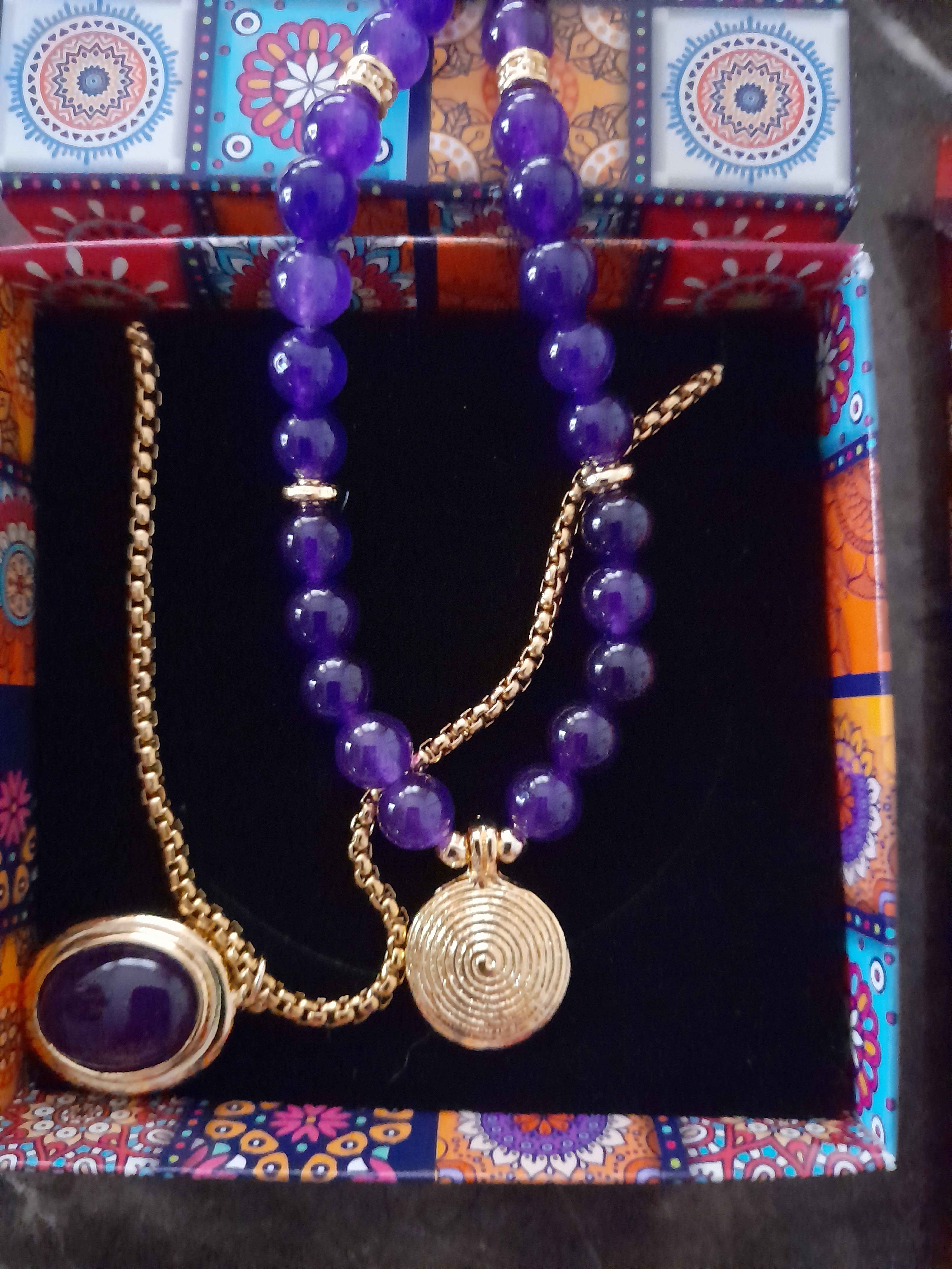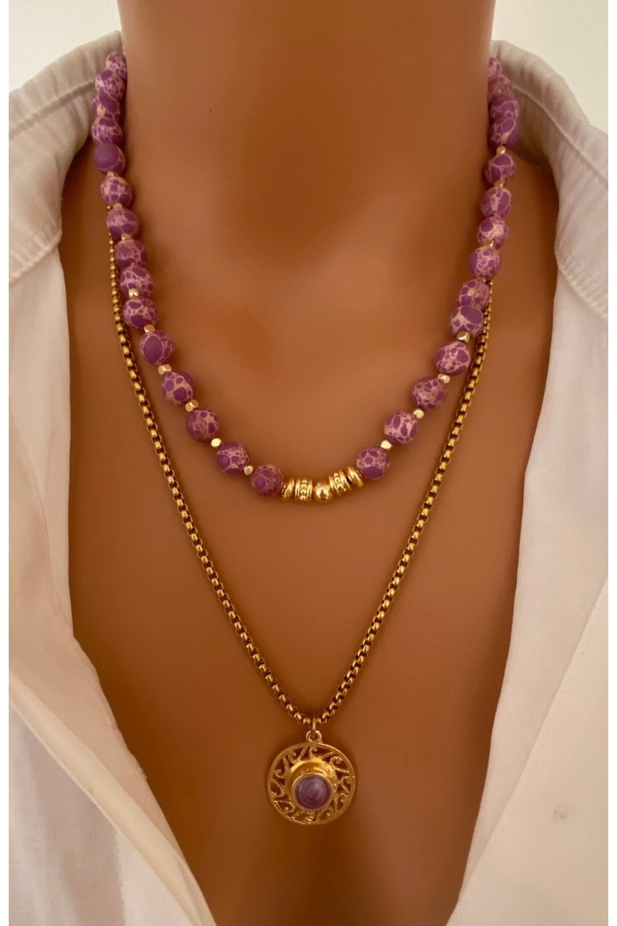 ( 2 KOLYE ) ÇELİK ve DOĞAL TAŞ Mor Ametist Taşı Çelik Zincir Altın Kaplama Çerçeveli Uç Kadın Kolye ( 2 KOLYE ) ÇELİK ve DOĞAL TAŞ Mor Ametist Taşı Çelik Zincir Altın Kaplama Çerçeveli Uç Kadın Kolye morametistikilikolye M
