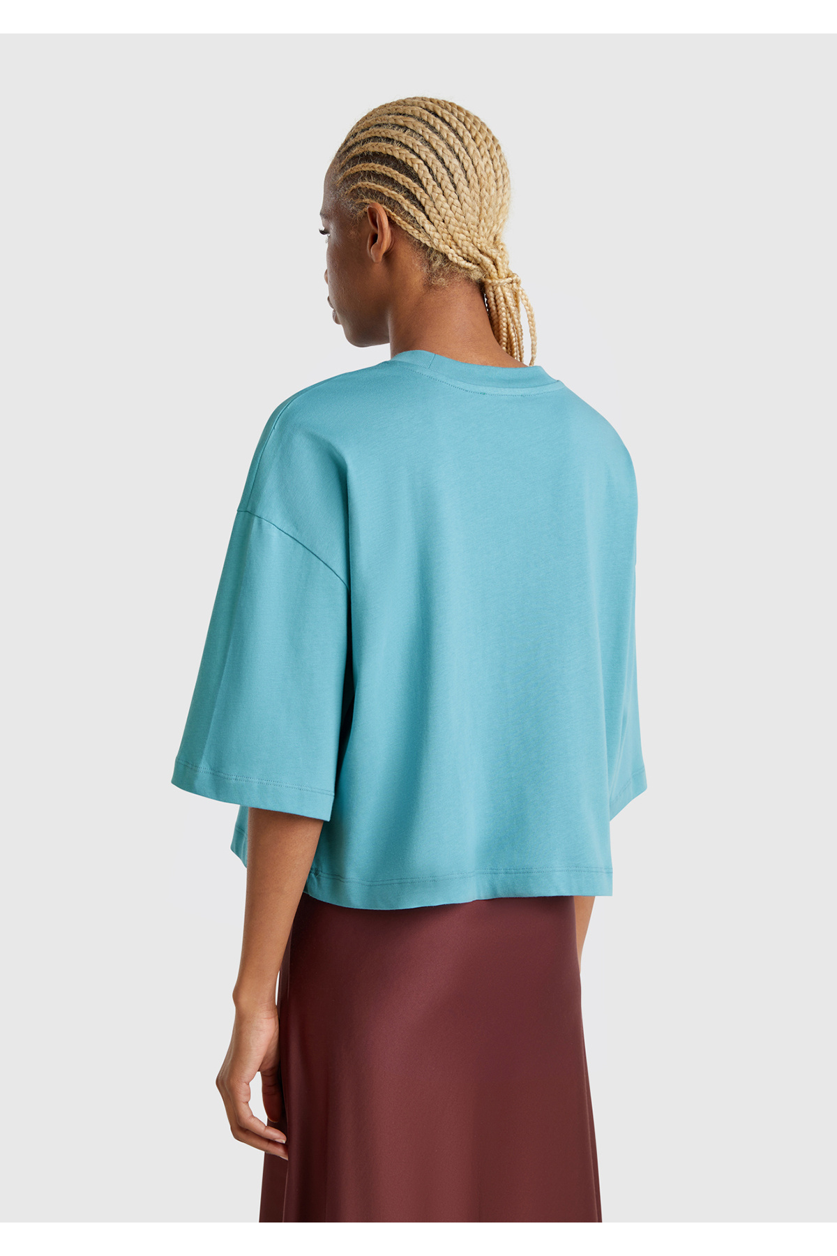 Kadın Mavi %100 Koton Çiçek Desenli Boxy Fit T-Shirt Kadın Mavi %100 Koton Çiçek Desenli Boxy Fit T-Shirt 125P3BL0D10A5 XL