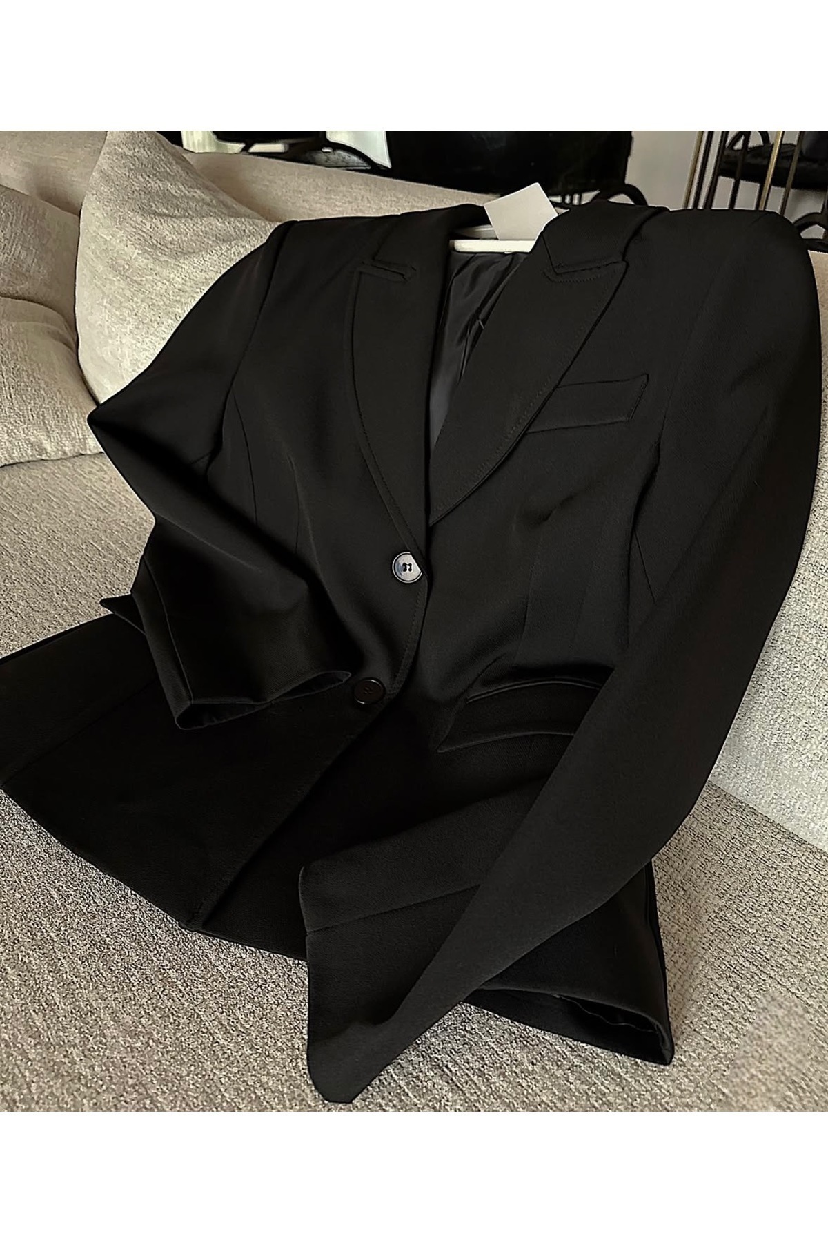 Bele Oturan Siyah Vatkalı Blazer Ceket Bele Oturan Siyah Vatkalı Blazer Ceket blazer1515151 L