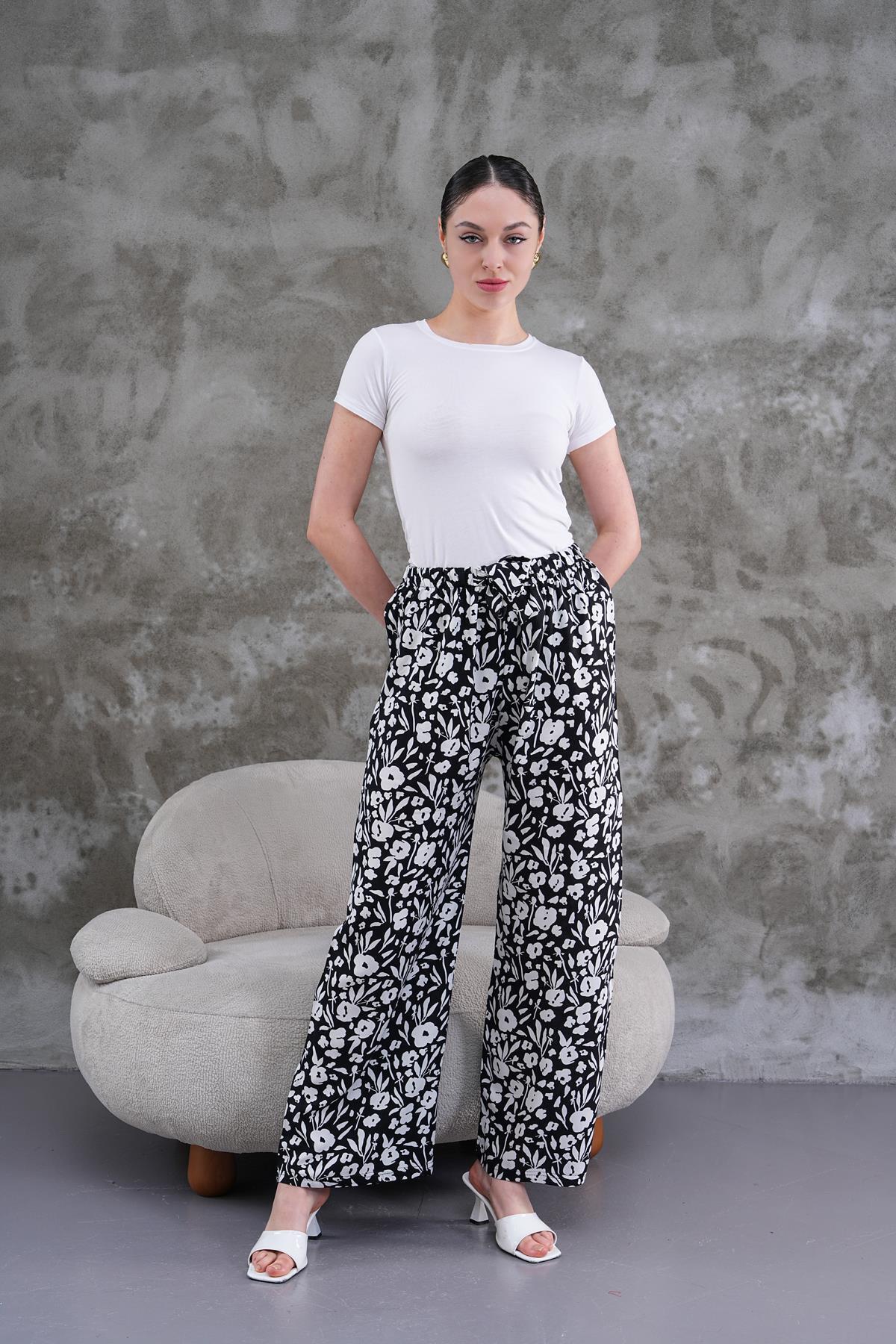 Kadın Yazlık Bol Paça Dijital Baskı Desenli Viskon Pantolon Kadın Yazlık Bol Paça Dijital Baskı Desenli Viskon Pantolon 237 4XL
