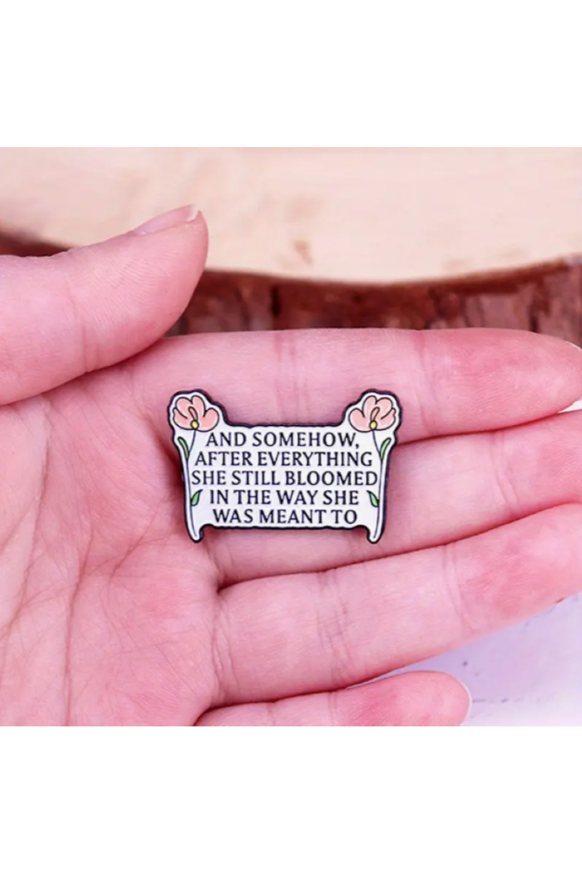 "And Somehow,After Everything She Still Bloomed In The Way She Was Meant To" Yazılı Tasarım Broş Pin "And Somehow,After Everything She Still Bloomed In The Way She Was Meant To" Yazılı Tasarım Broş Pin MLKB10359 تک سایز