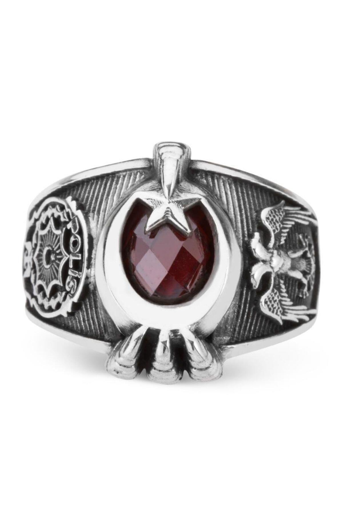 Erkek Gümüş Yüzük - Polis Temalı Kırmızı Yakut Taşlı Erkek Yüzük Erkek Gümüş Yüzük - Polis Temalı Kırmızı Yakut Taşlı Erkek Yüzük gys0003 30