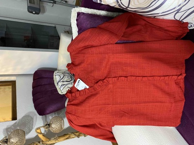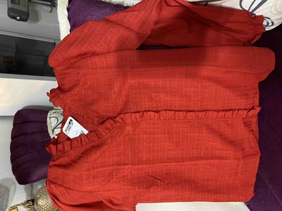 Kadın Kırmızı Yakası Ve Önü Fırfır Detaylı Kolları Lastikli Uzun Kollu Bluz ARM-25K001030 Kadın Kırmızı Yakası Ve Önü Fırfır Detaylı Kolları Lastikli Uzun Kollu Bluz ARM-25K001030 XL