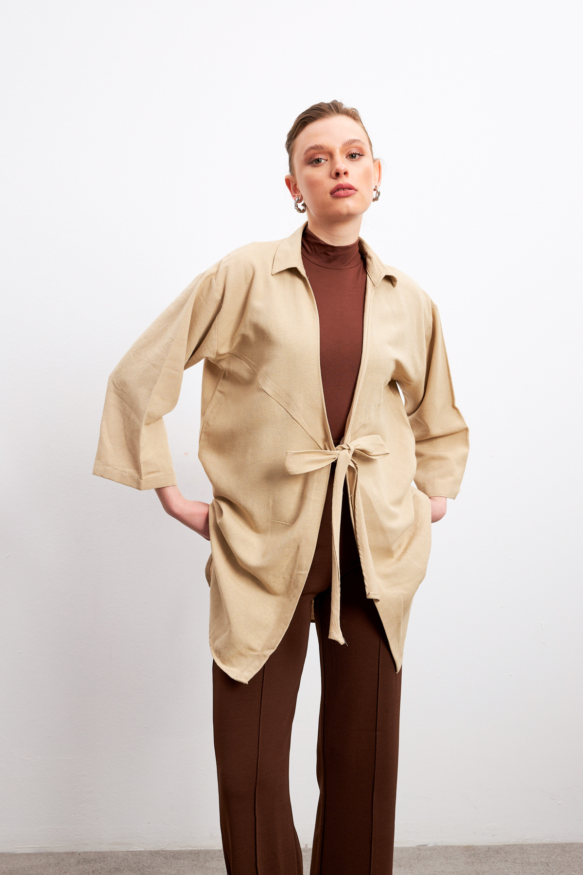 Krem Flam Keten Kimono Gömlek Krem Flam Keten Kimono Gömlek KİMONO100 Standart
