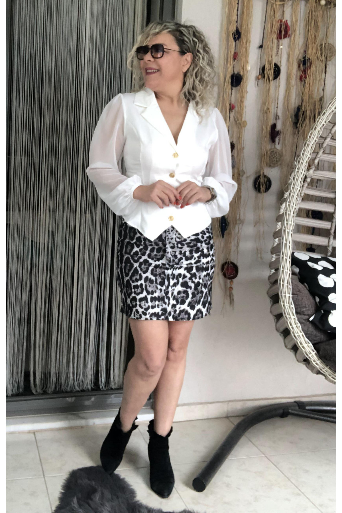 Kolu Şifon Gold Düğmeli Ceket Kolu Şifon Gold Düğmeli Ceket BYAZ020CK36 XXL/P