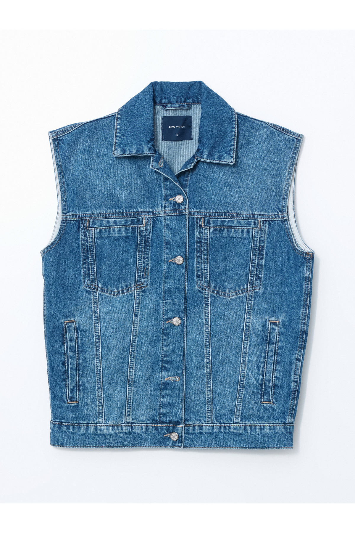 Gömlek Yaka Kadın Jean Yelek Gömlek Yaka Kadın Jean Yelek S5JR94Z8 L