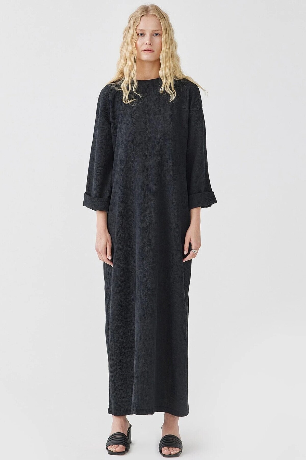 Siyah Geniş Kollu Kuşaklı Dokuma Elbise Siyah Geniş Kollu Kuşaklı Dokuma Elbise SD/MYAZ25ELB0039 46