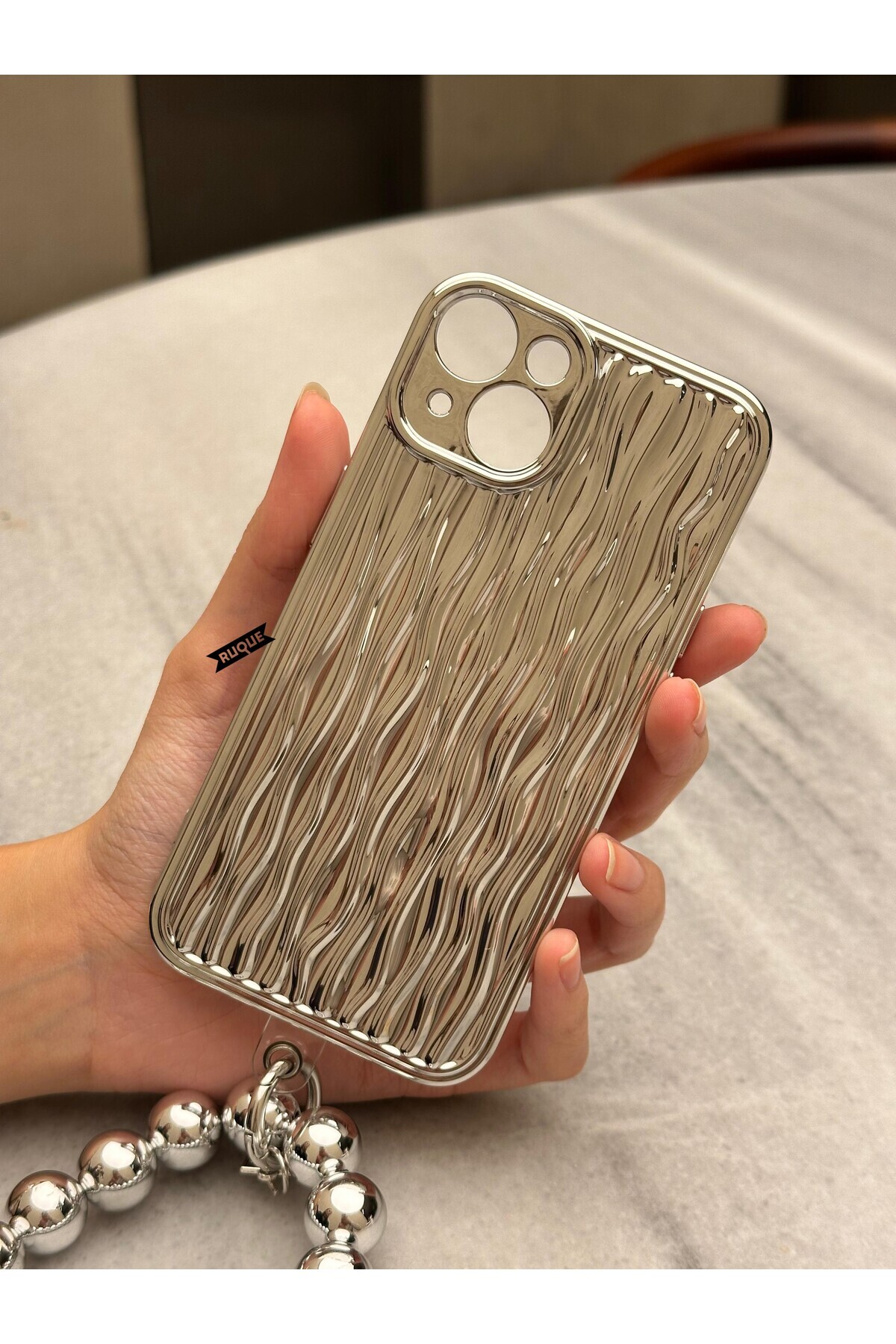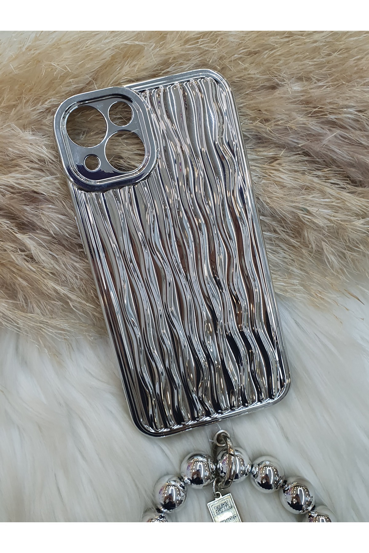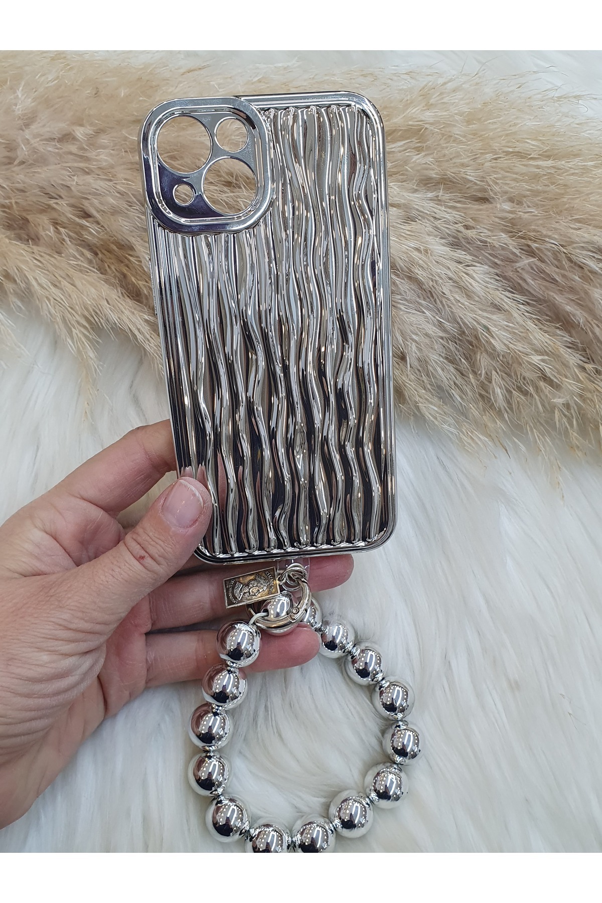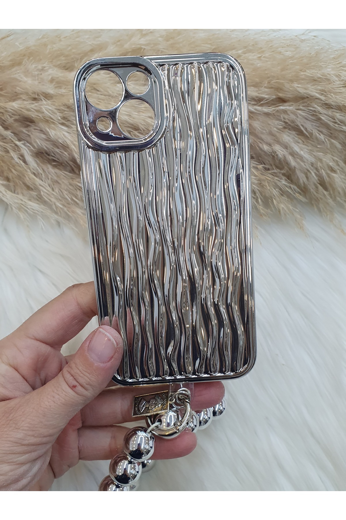 Iphone 15 Uyumlu Bileklik Charm Aksesuarlı Su Dalgalı Metalik Parlak Kılıf Iphone 15 Uyumlu Bileklik Charm Aksesuarlı Su Dalgalı Metalik Parlak Kılıf 15CHARMLI تک سایز