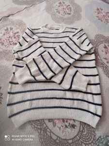 Kadın İnce Çizgili Krem Over Size Triko Kazak Kadın İnce Çizgili Krem Over Size Triko Kazak fmoda2100 L