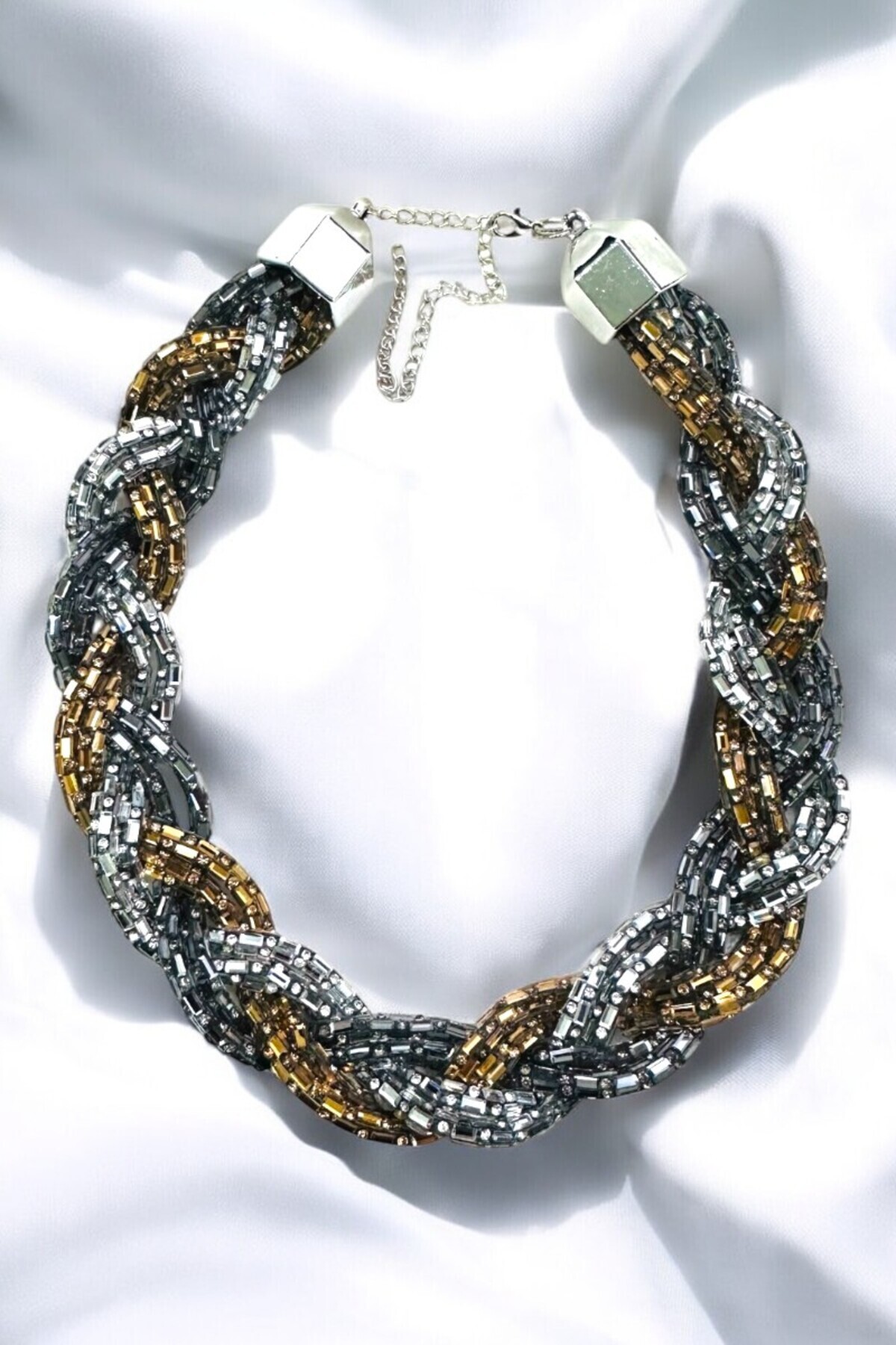 TAŞLI PARLAK ÖRGÜ GERDANLIK KOLYE TAŞLI PARLAK ÖRGÜ GERDANLIK KOLYE KP6660 تک سایز
