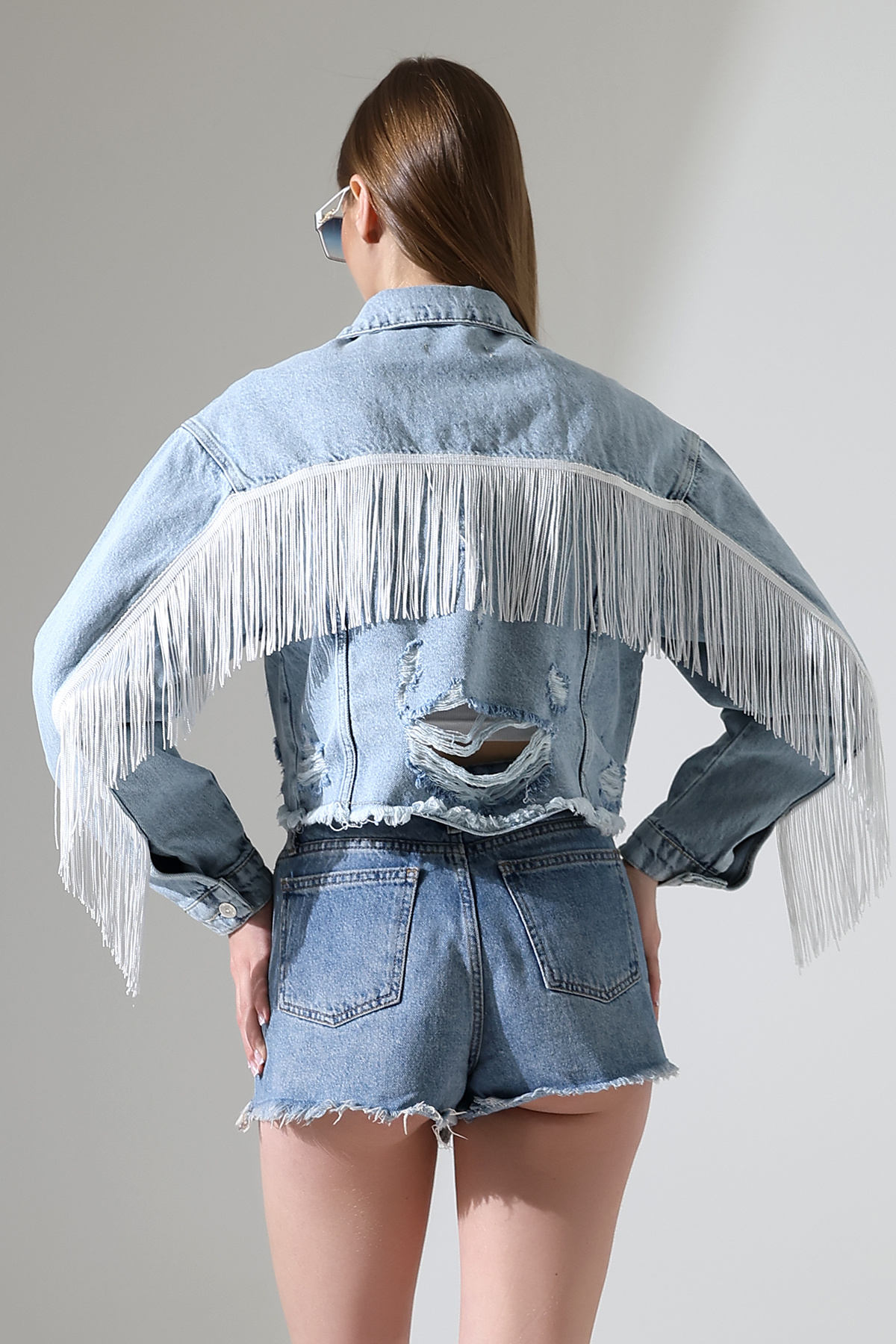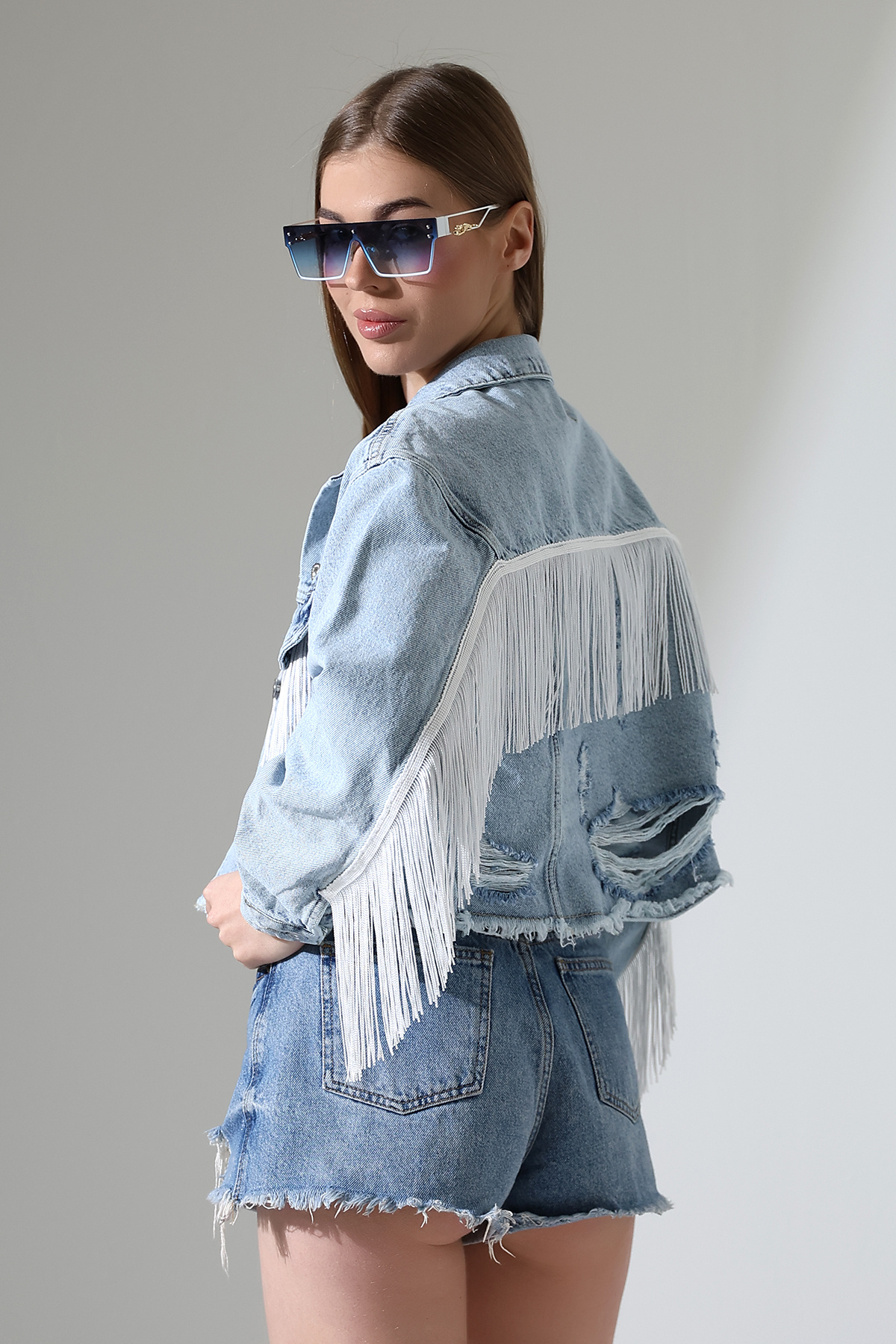 Buz Mavi Lazerli Püsküllü Kot Ceket Buz Mavi Lazerli Püsküllü Kot Ceket CKT00001 XL