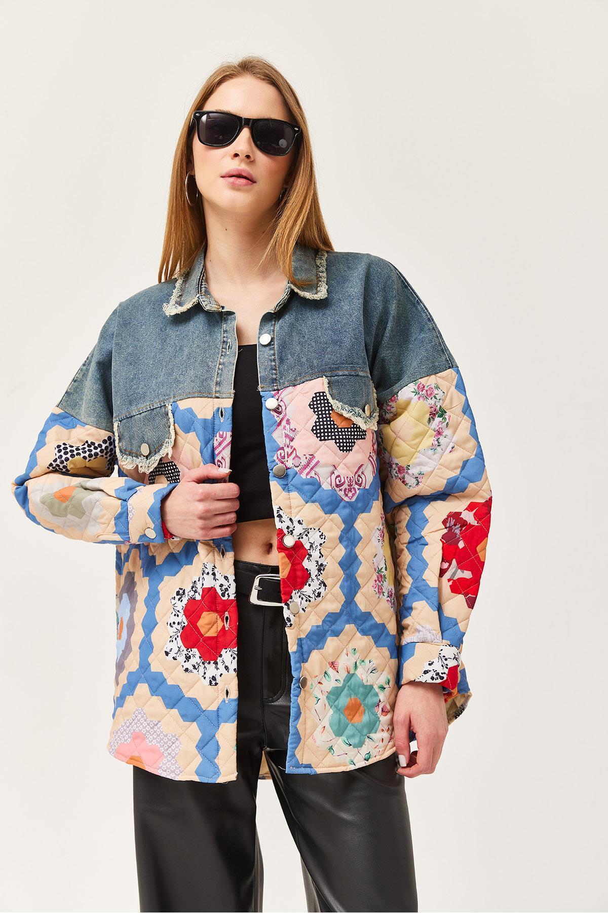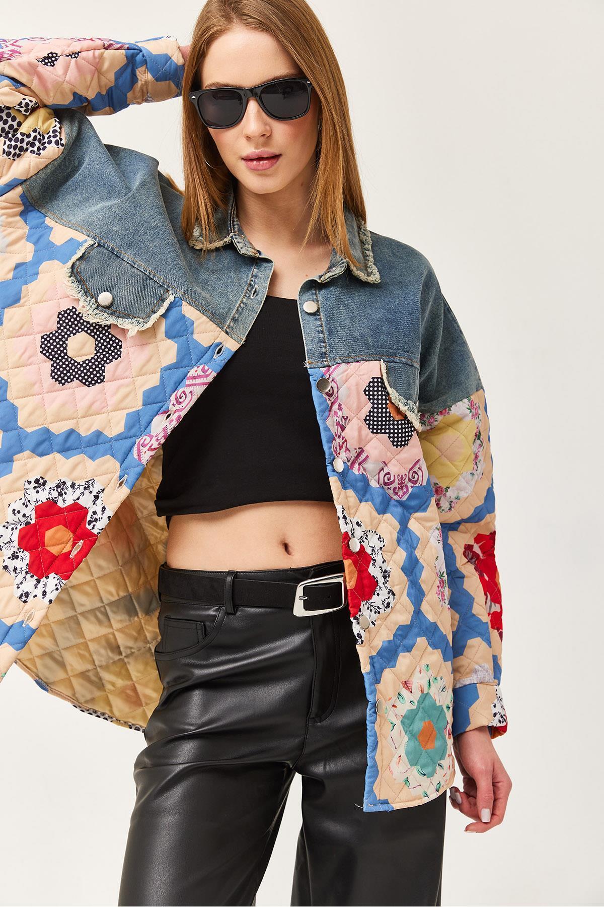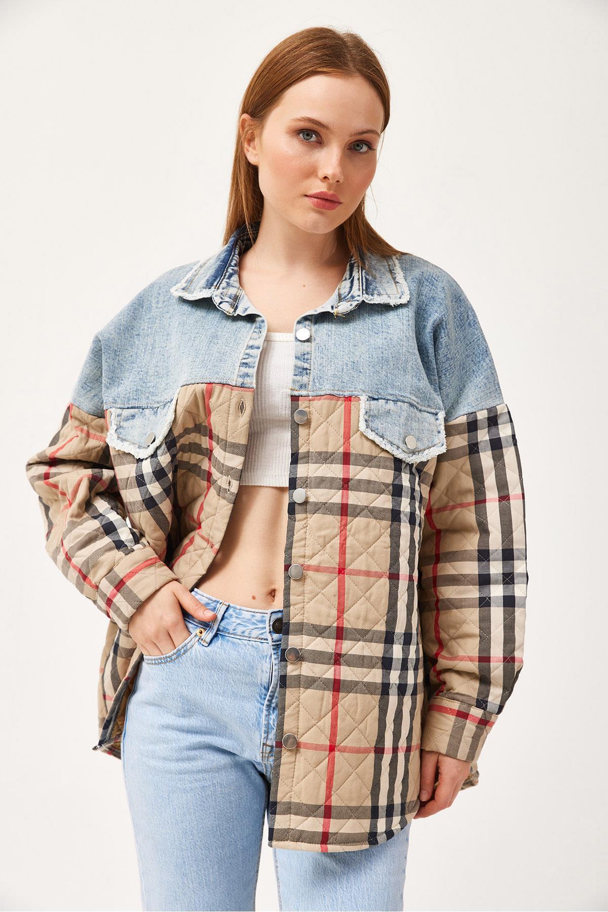 Üstü Kot Kapitone Ceket Bej Üstü Kot Kapitone Ceket Bej 250150CKT S/M