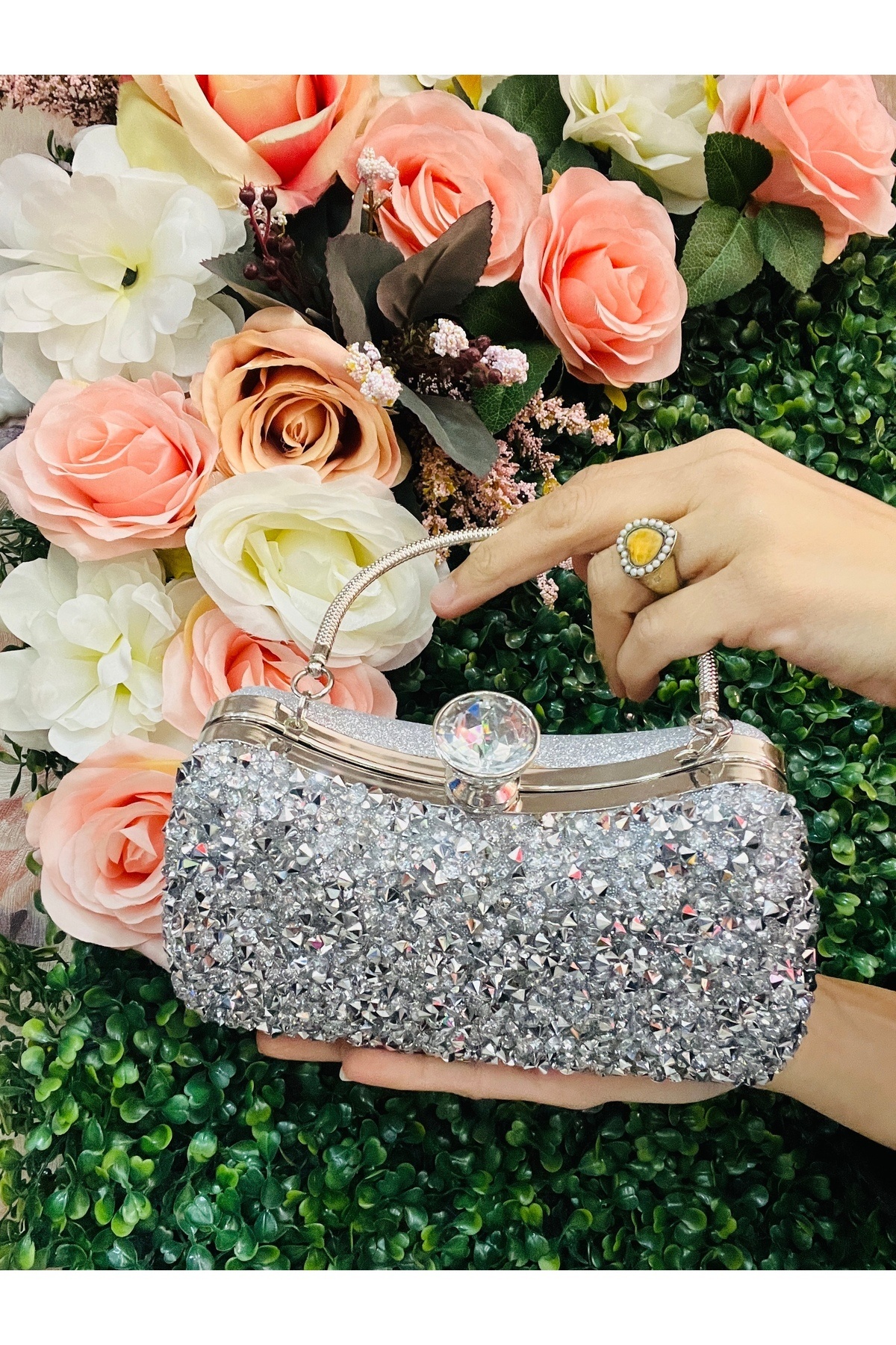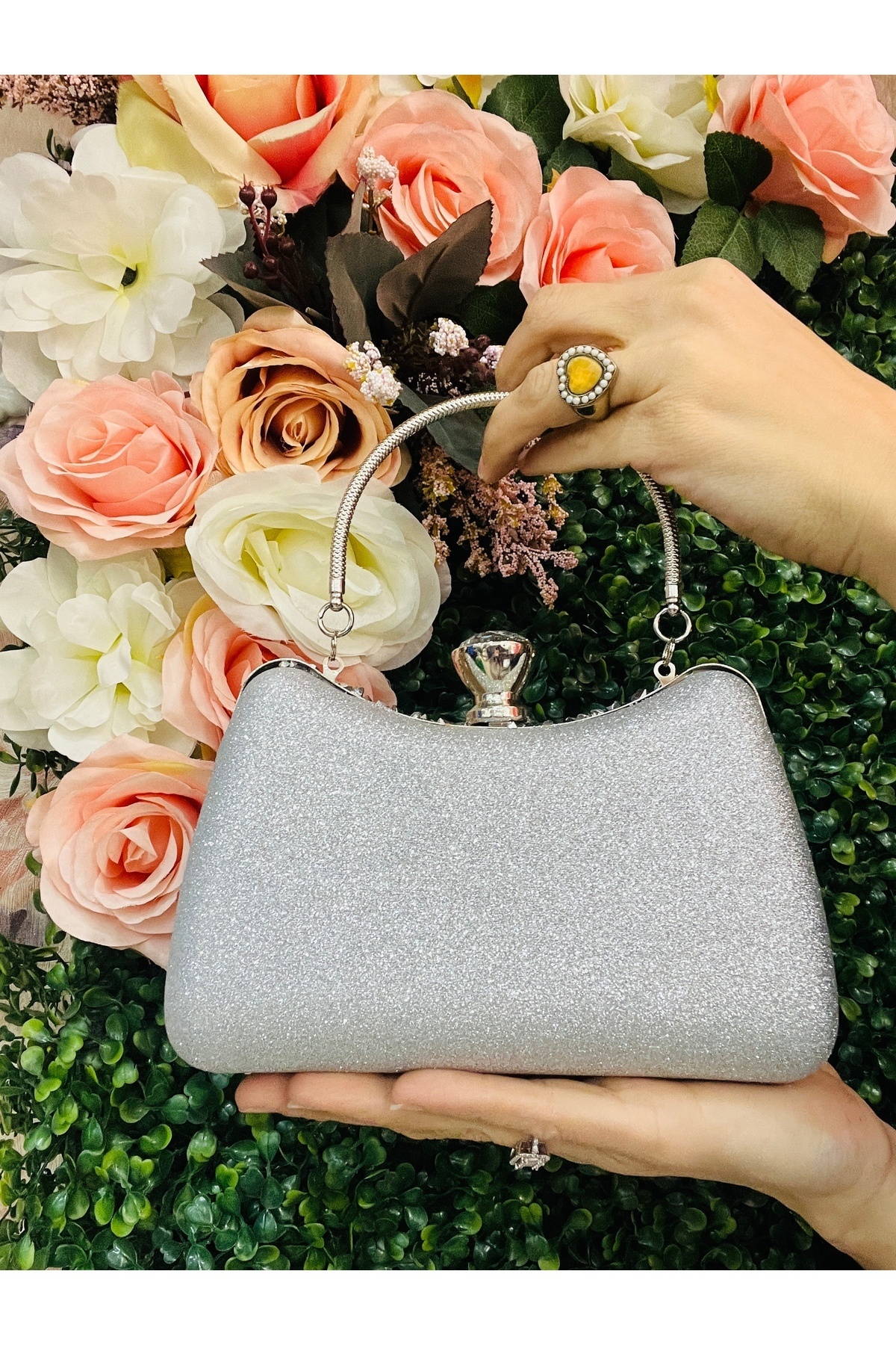 Gümüş Renk El Ve Uzun Zincir Askılı Kadın Abiye Çanta Gümüş Renk El Ve Uzun Zincir Askılı Kadın Abiye Çanta MENAABİYE-007 تک سایز