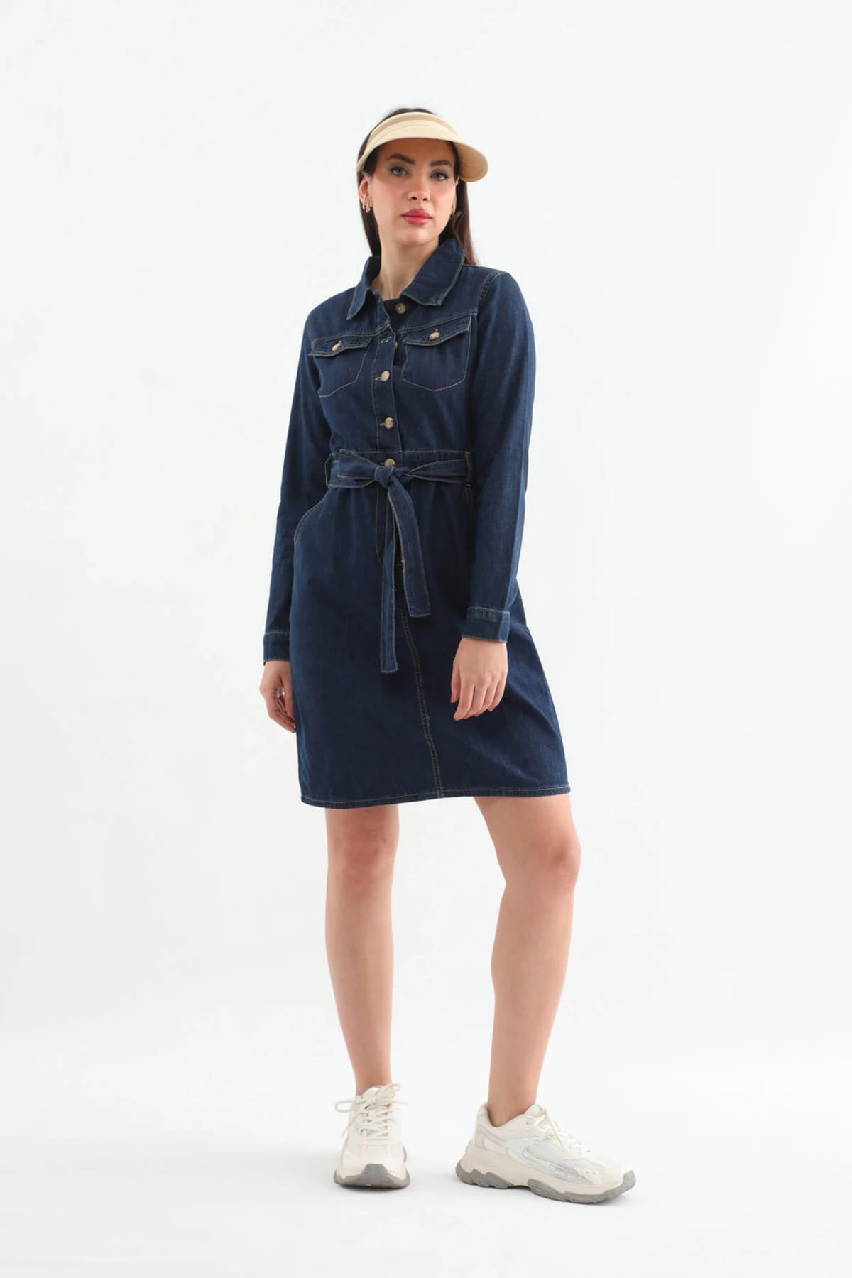 Kuşaklı Denim Elbise MISSEL1054 Kuşaklı Denim Elbise MISSEL1054 XL