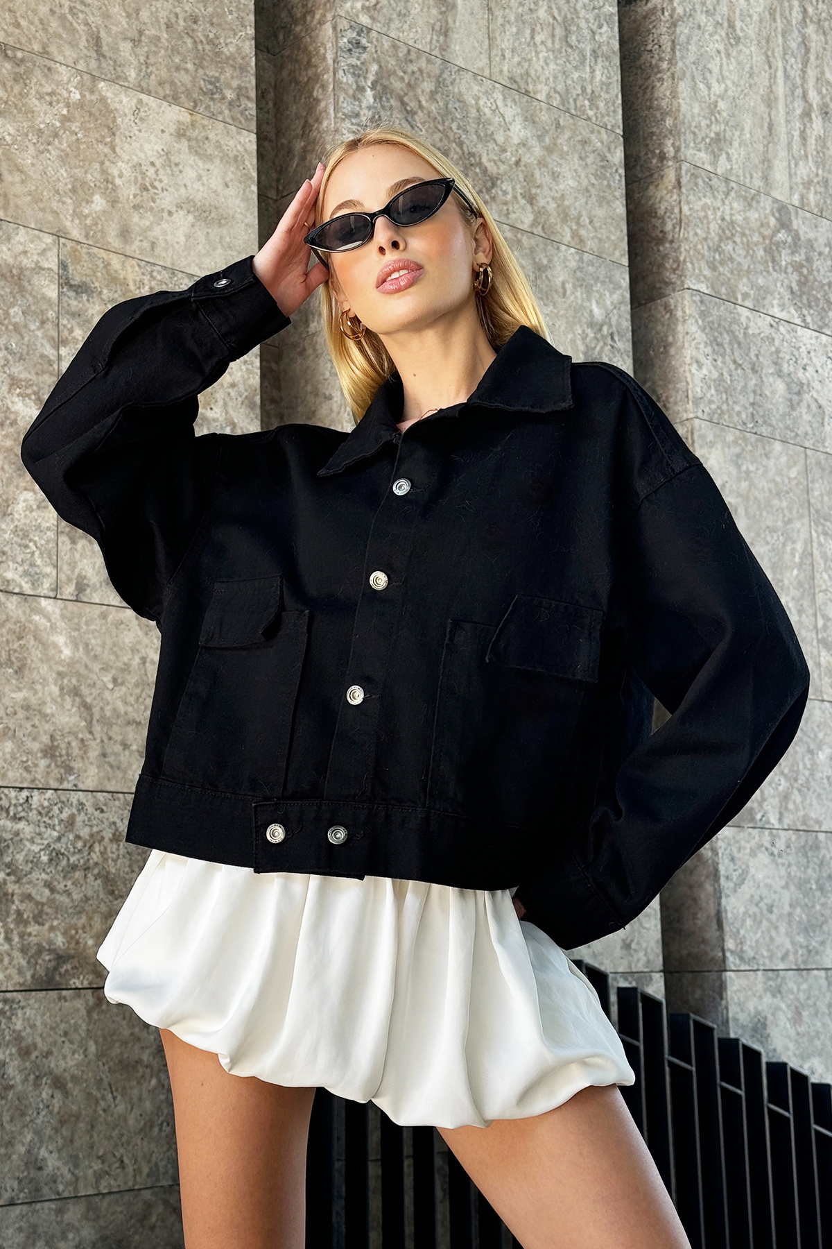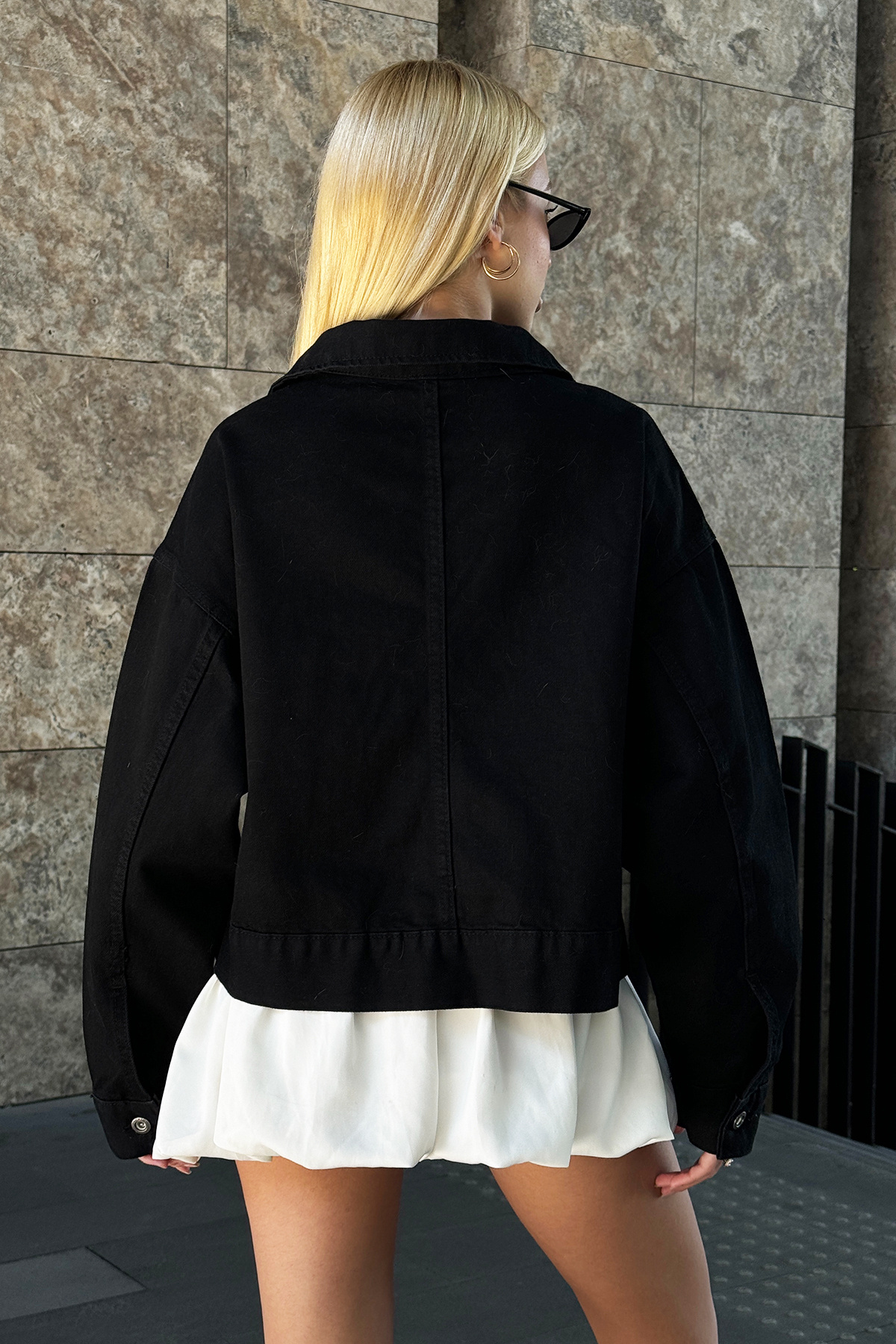 Kadın Siyah Cep Detaylı Düğmeli Kot Ceket Prmx12961 Kadın Siyah Cep Detaylı Düğmeli Kot Ceket Prmx12961 PRMX12961 XL