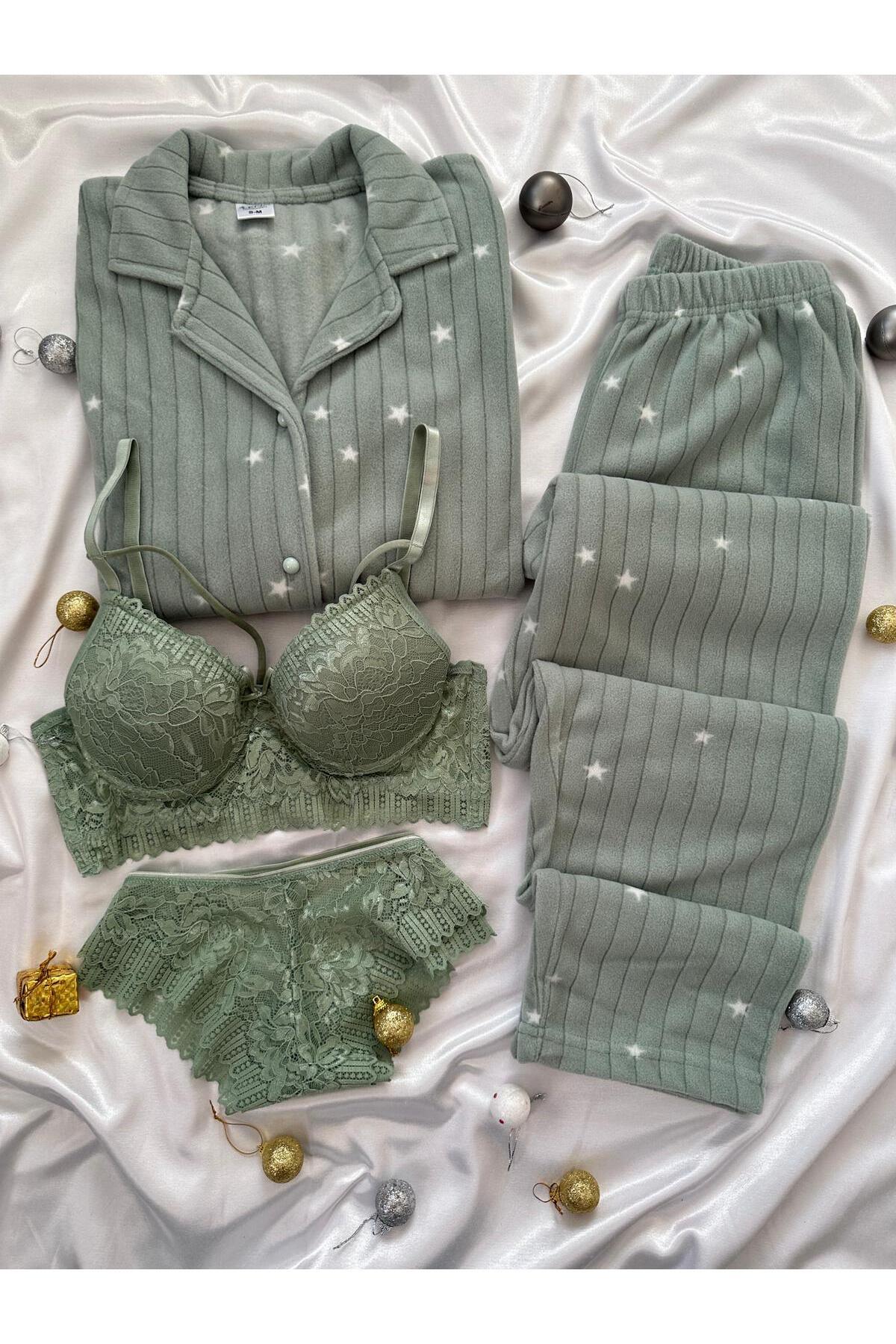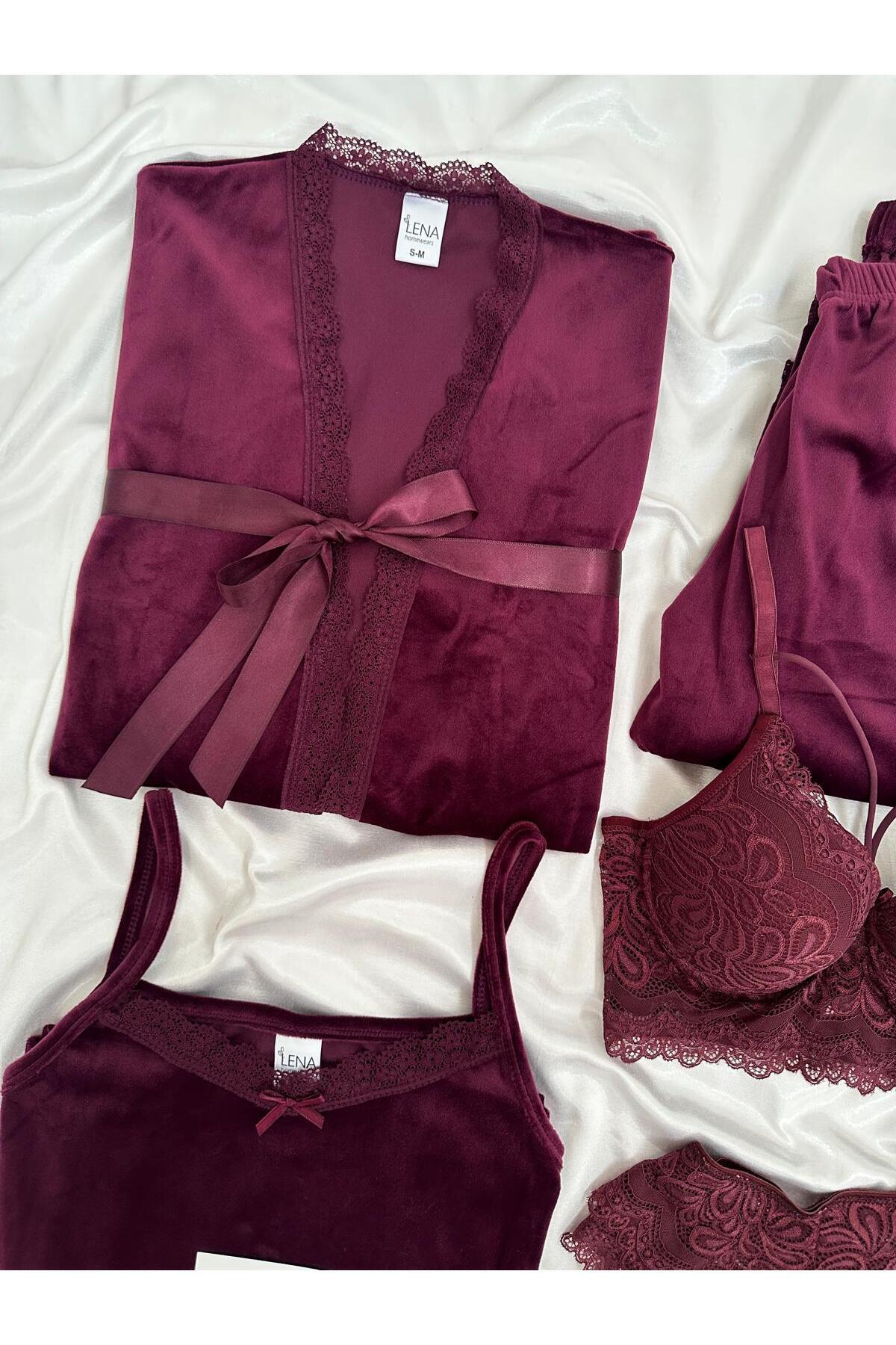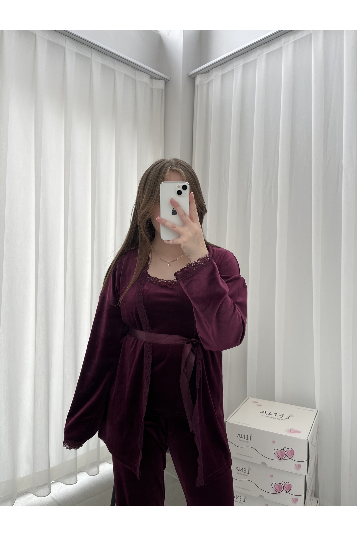 Mürdüm İç Çamaşırlı Kadife Sabahlıklı Kadın Pijama Takımı Mürdüm İç Çamaşırlı Kadife Sabahlıklı Kadın Pijama Takımı 1304 2XL