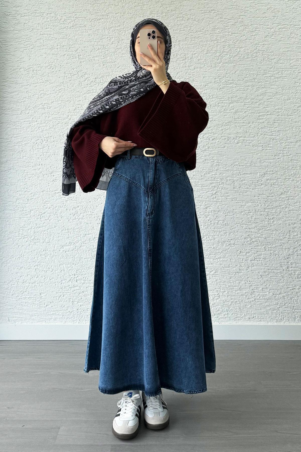Biye Detay Kloş Denim Kot Etek Modeli Biye Detay Kloş Denim Kot Etek Modeli mlk01459 42