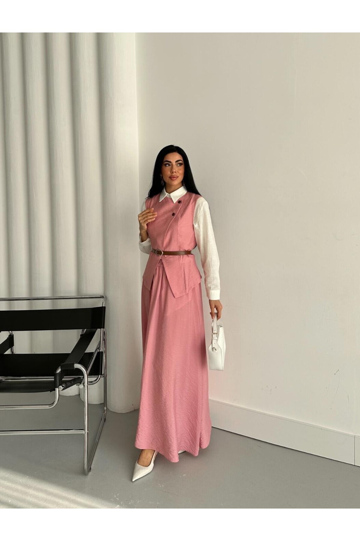 KADIN 3LÜ KETEN GÖMLEKLİ ETEKLİ YELEKLİ TAKIM KADIN 3LÜ KETEN GÖMLEKLİ ETEKLİ YELEKLİ TAKIM BK460367 40