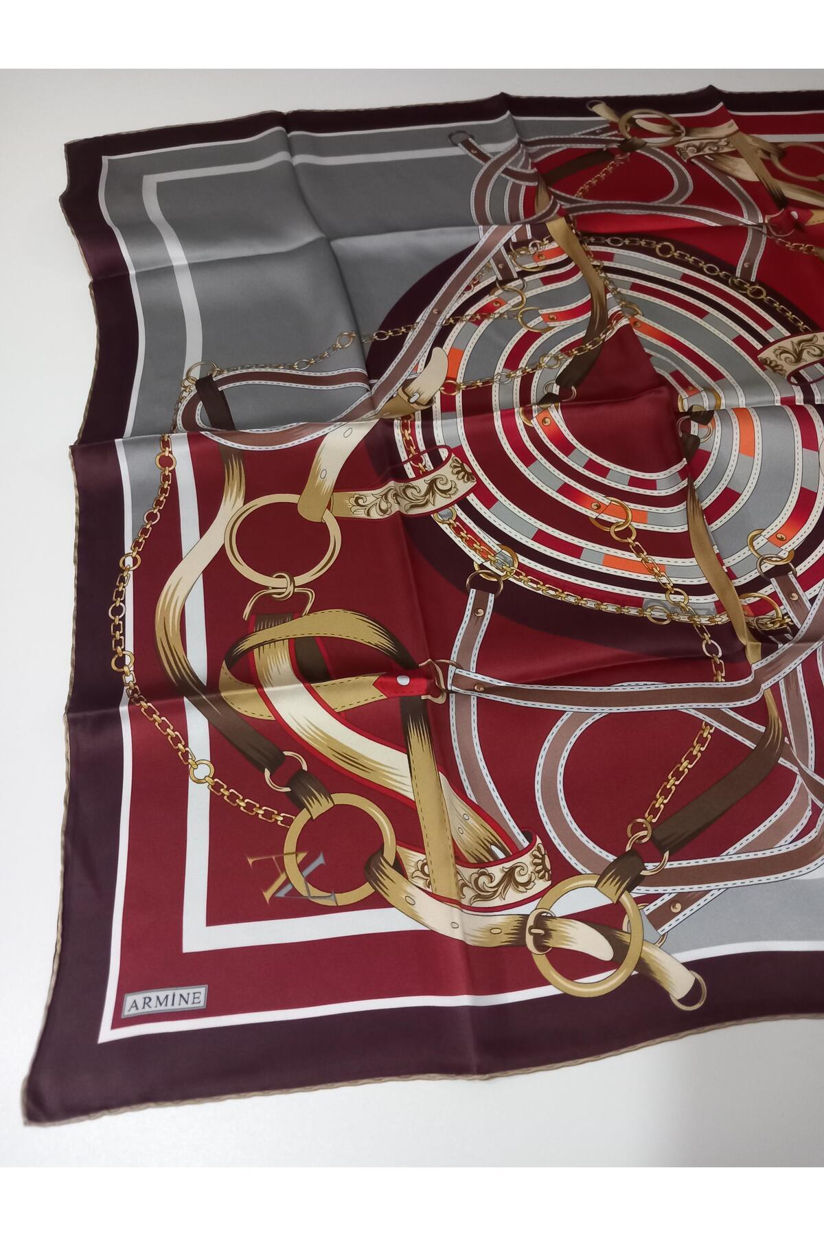 Bordo Gri Zincir Kemer Desen Saf İpek Tivil Dokuma Eşarp-E25YA9315D02-31-KVS0664 Bordo Gri Zincir Kemer Desen Saf İpek Tivil Dokuma Eşarp-E25YA9315D02-31-KVS0664