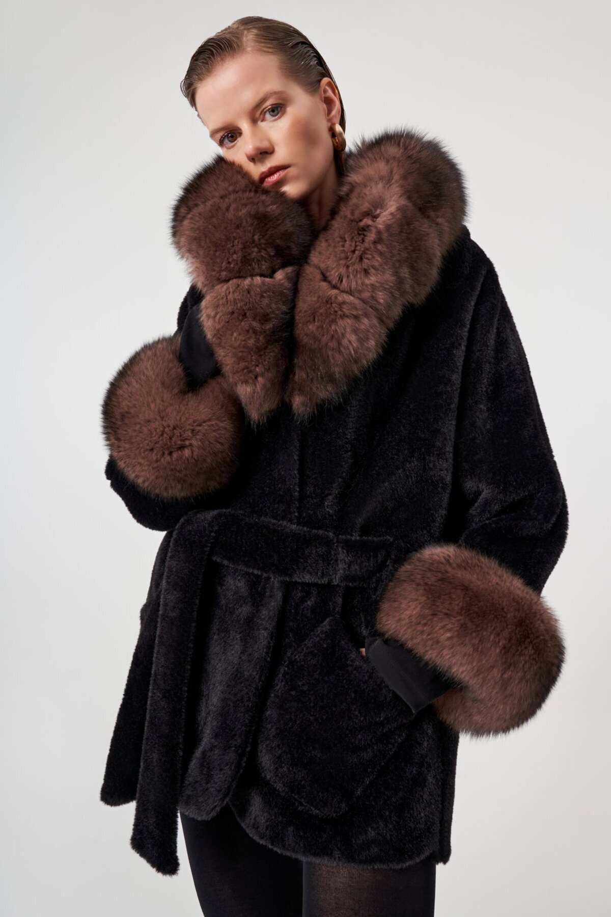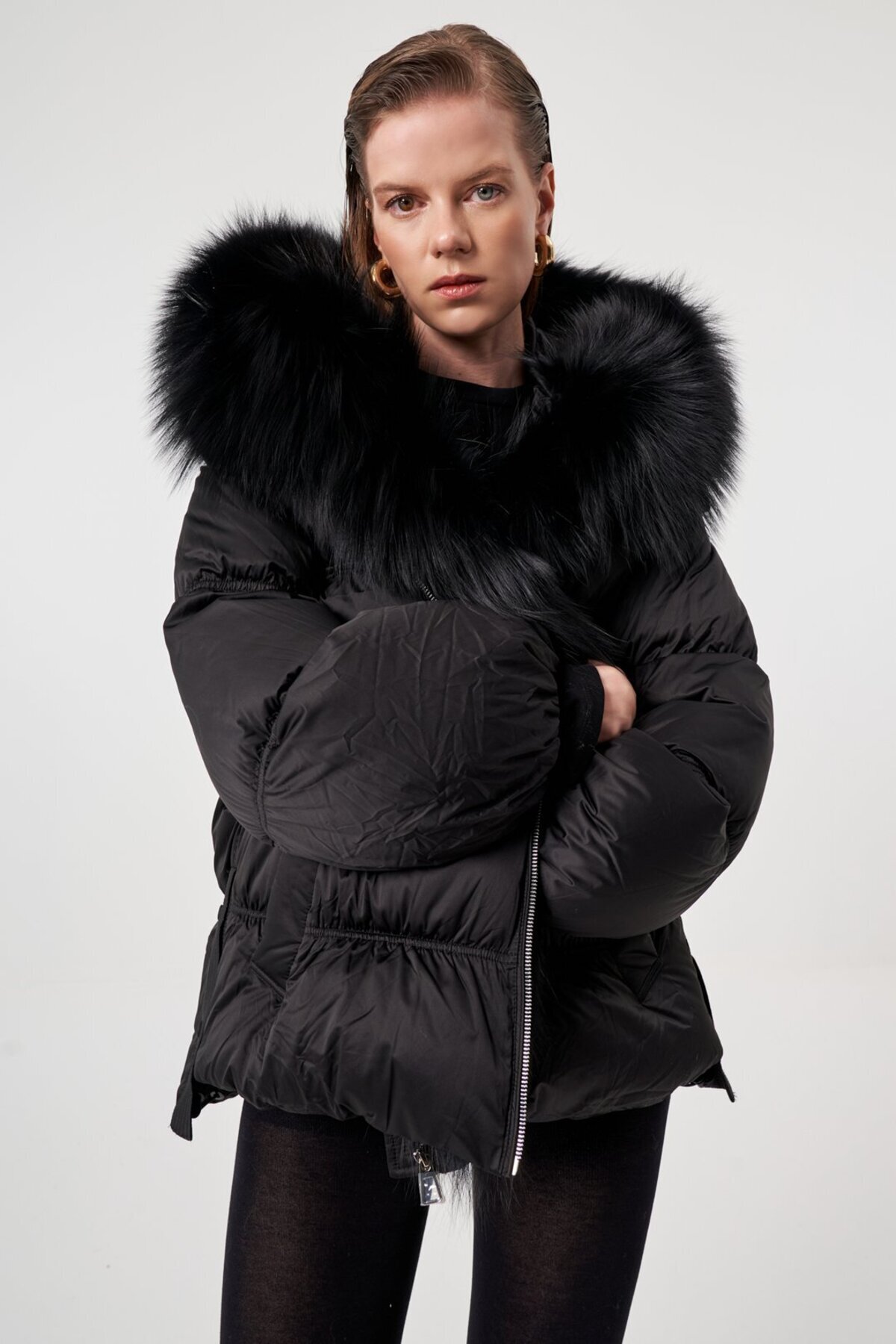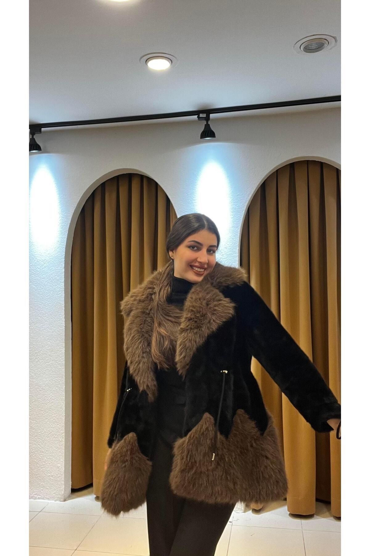Kapüşonlu Kürk Detaylı Kaban Kapüşonlu Kürk Detaylı Kaban K250033759590044 L
