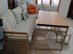 Ürün termin süresinden erken kargolandı, hızlı verildi ve kargoda hızlı geldi, montajı çok kolay herkes çözebilir yarım saat içinde hazırlıyorsunuz, kalitesine gelince fiyatına göre kalitesi gayet iyi ama fiyatına göre, bu fiyata aldığınız ürünü piyasada 5 katına satılan ürünlerle kıyaslamayın, elmayı elma ile kıyaslayın, o zaman kalite olarak gayet yeterli, oturumu çok rahat minderler çok iyi, oturumdan şüpheniz olmasın, olumsuz olarak masa sallanıyor tasarım hatası var ne yaparsanız yapın sallantıyı kesemezsiniz, masa ayakları arasında yatay bir kayıt olması lazım firma yetkililerinin dikkatine, o yüzden masasız versiyonunu alın şimdilik, masa için araya sanayide bir kayıt kestirip boyatıp montajını kendim yapıcam umarım üretici masadaki hatayı düzeltir, tabureler de çok şık ve rahat, sonuç olarak masasız versiyonunu alın ve hiç korkmayın mükemmel masayı kendiniz çözün. Satıcı ilgili ürün güzel ve ucuz daha ne olsun.
