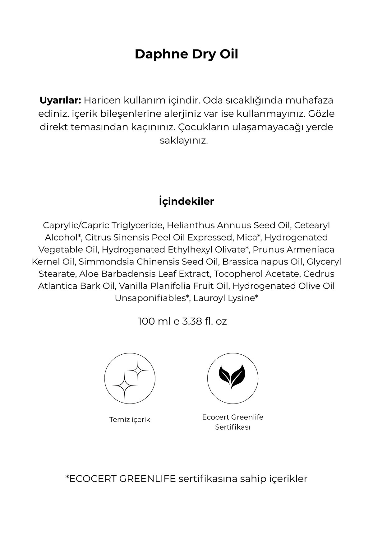 %100 Doğal Daphne Vücut Nemlendirici Yağ - Besleyici, Canlandırıcı, Parlatan Özellik Dry Oil %100 Doğal Daphne Vücut Nemlendirici Yağ - Besleyici, Canlandırıcı, Parlatan Özellik Dry Oil 66364-201 تک سایز