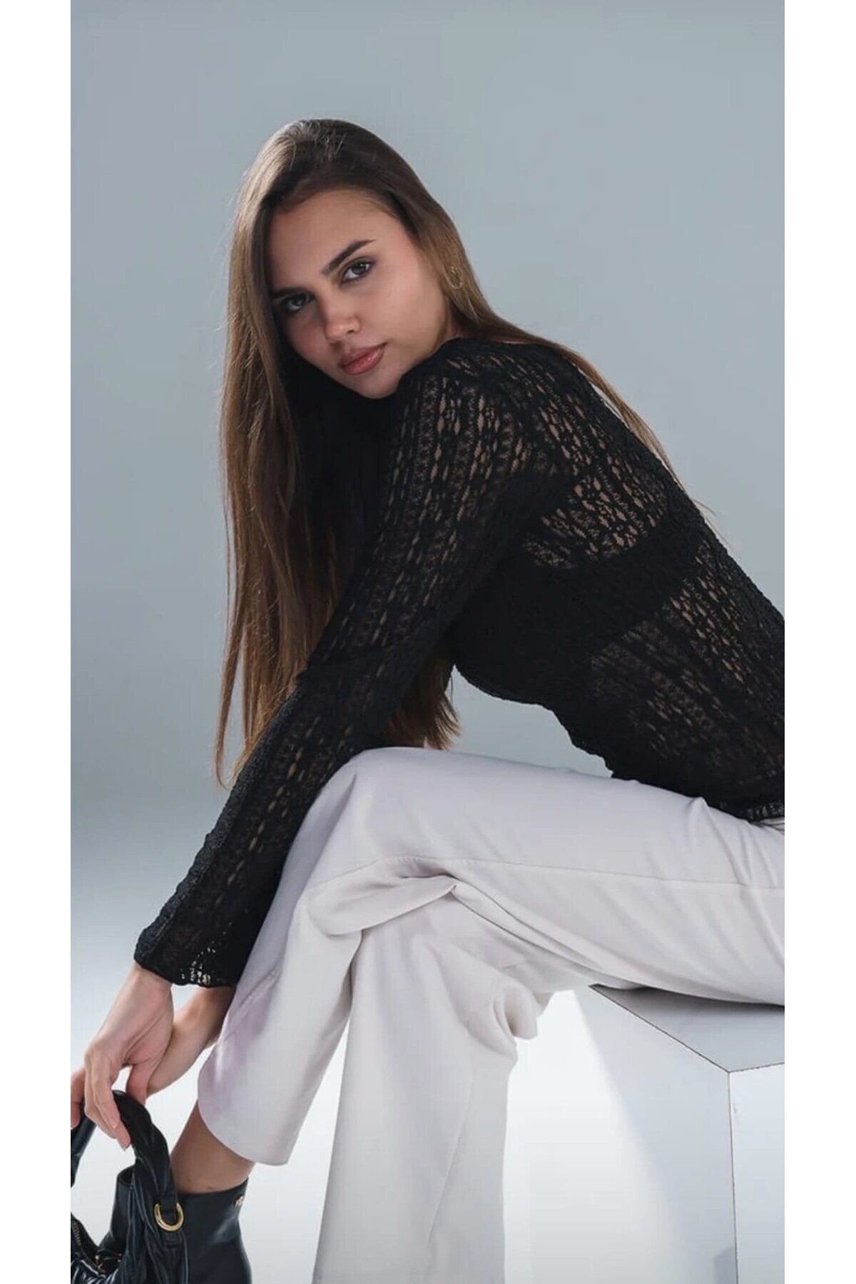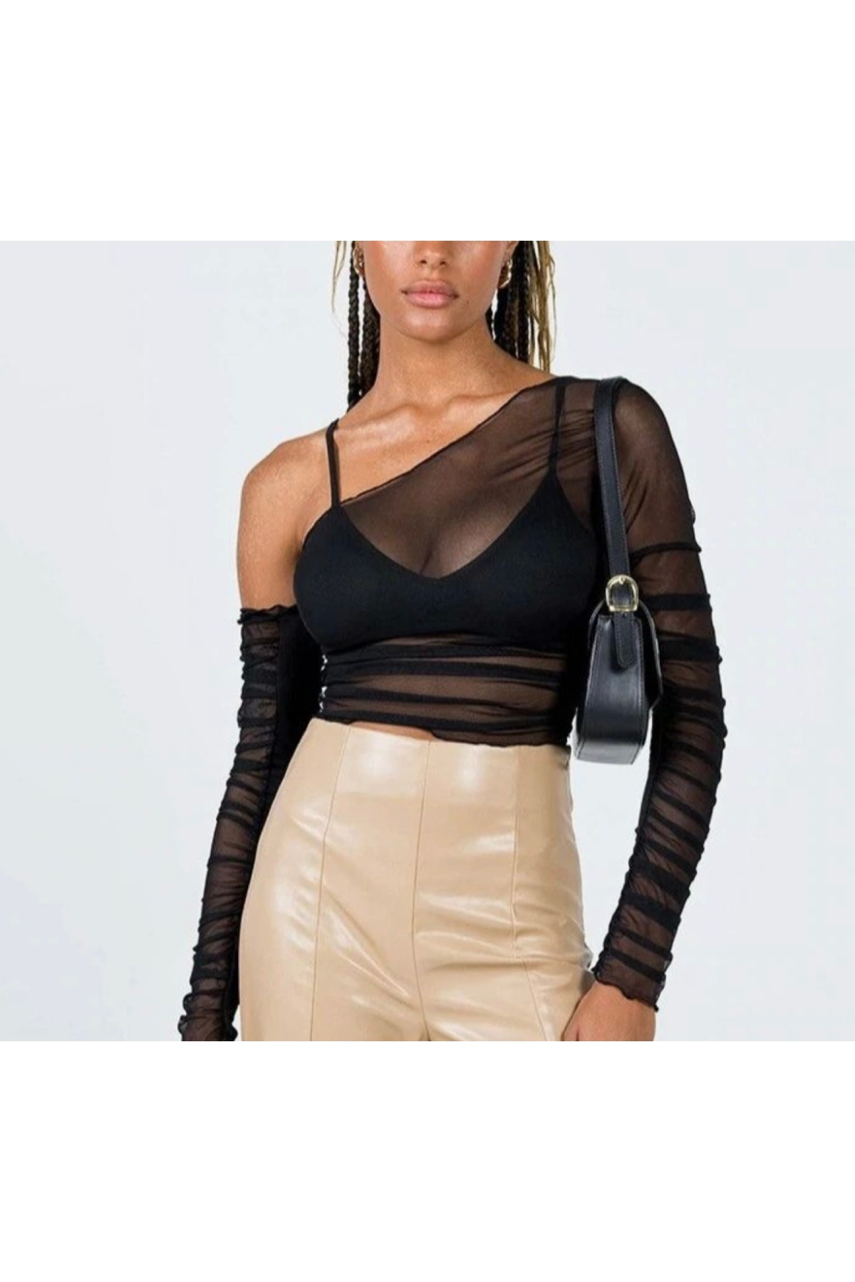 Büzgülü Asimetrik Kol Tül Bluz Büzgülü Asimetrik Kol Tül Bluz 6171881 XL