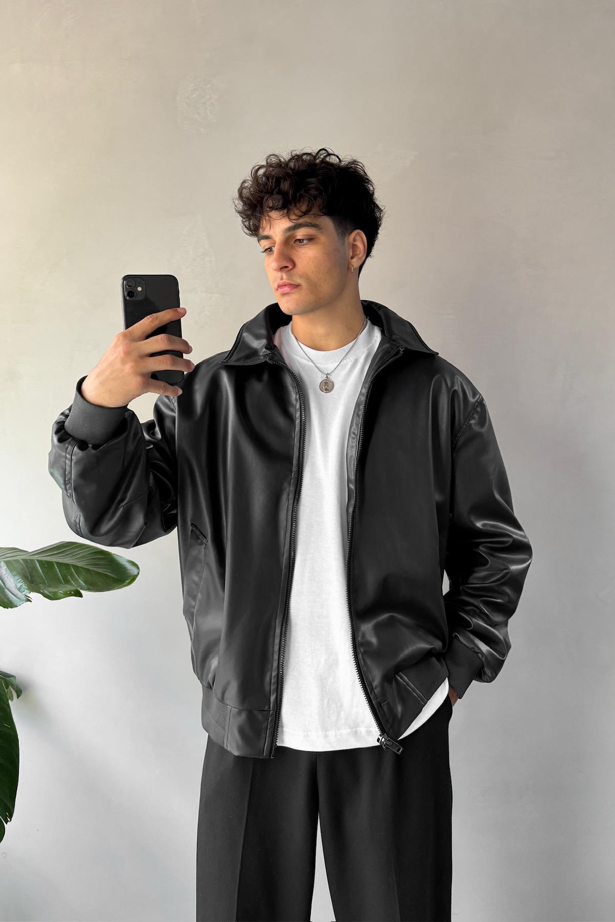 Oversize Erkek Siyah Deri Ceket Oversize Erkek Siyah Deri Ceket ZARA DERİ CEKET 2XL