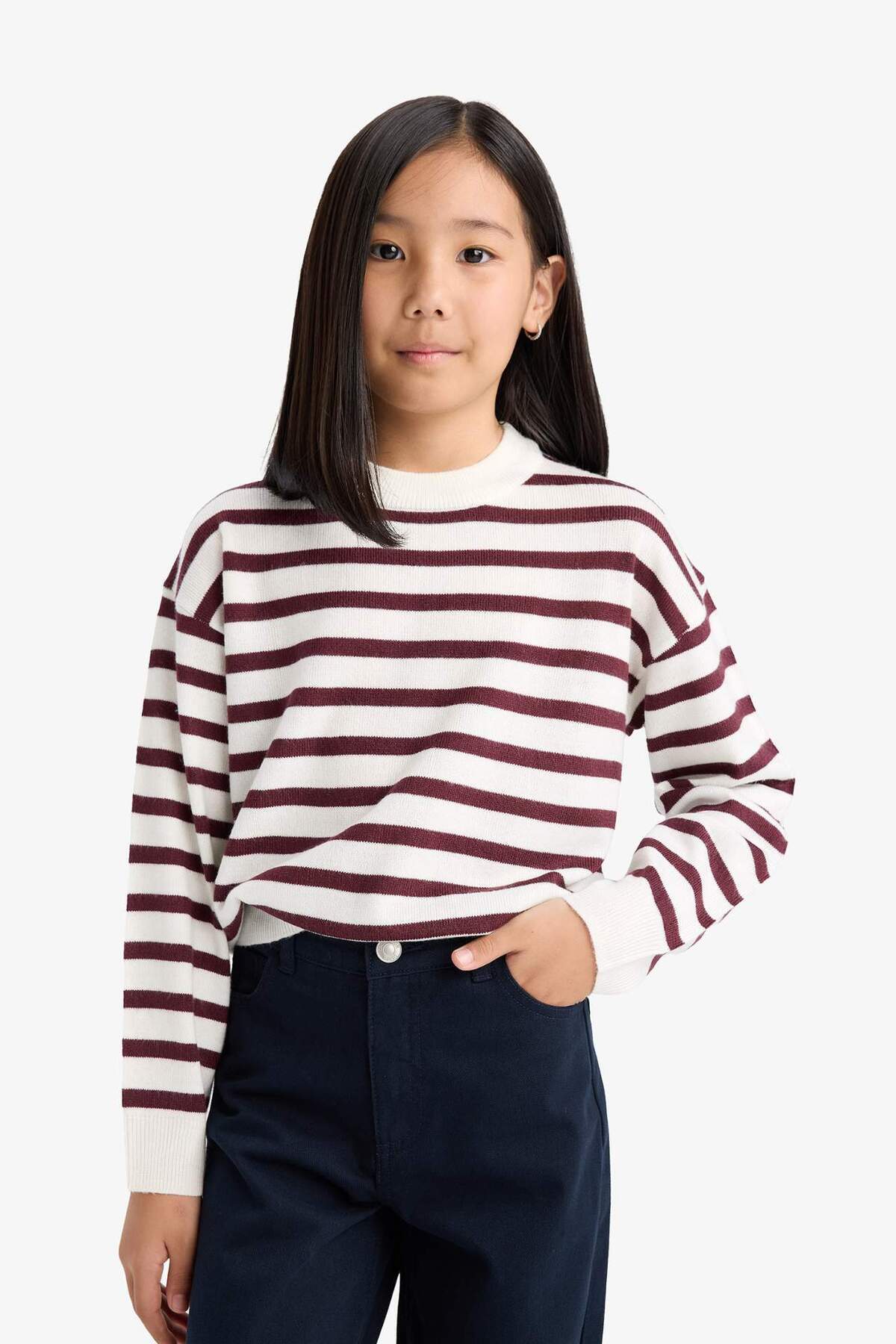 Kız Çocuk Bisiklet Yaka Çizgili Ajurlu Çizgili Triko Kazak D9215A825SP Kız Çocuk Bisiklet Yaka Çizgili Ajurlu Çizgili Triko Kazak D9215A825SP TYC704F9817E135801B4DA310 13-14 Yaş