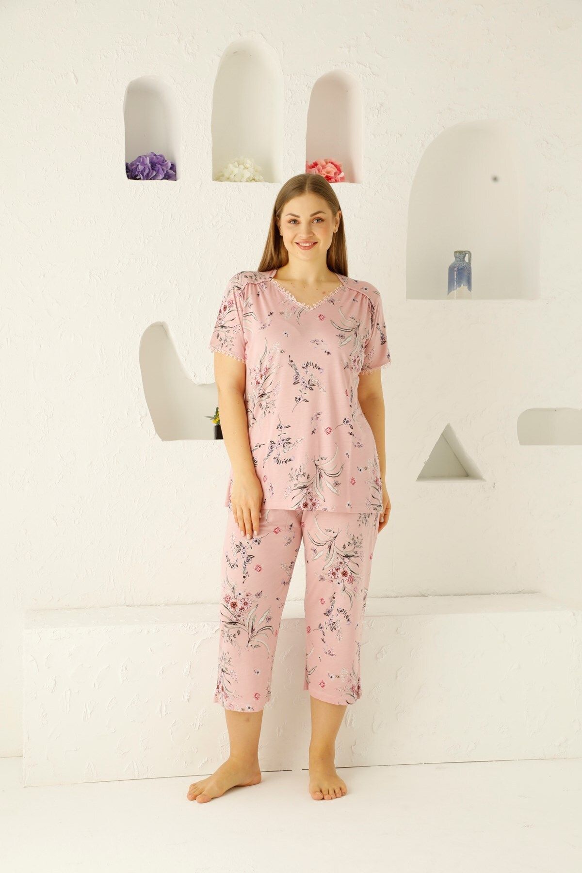 Kadın Büyük Beden Viskon Penye Kumaş Kısa Kollu Kapri Takım 14657 Kadın Büyük Beden Viskon Penye Kumaş Kısa Kollu Kapri Takım 14657 4XL