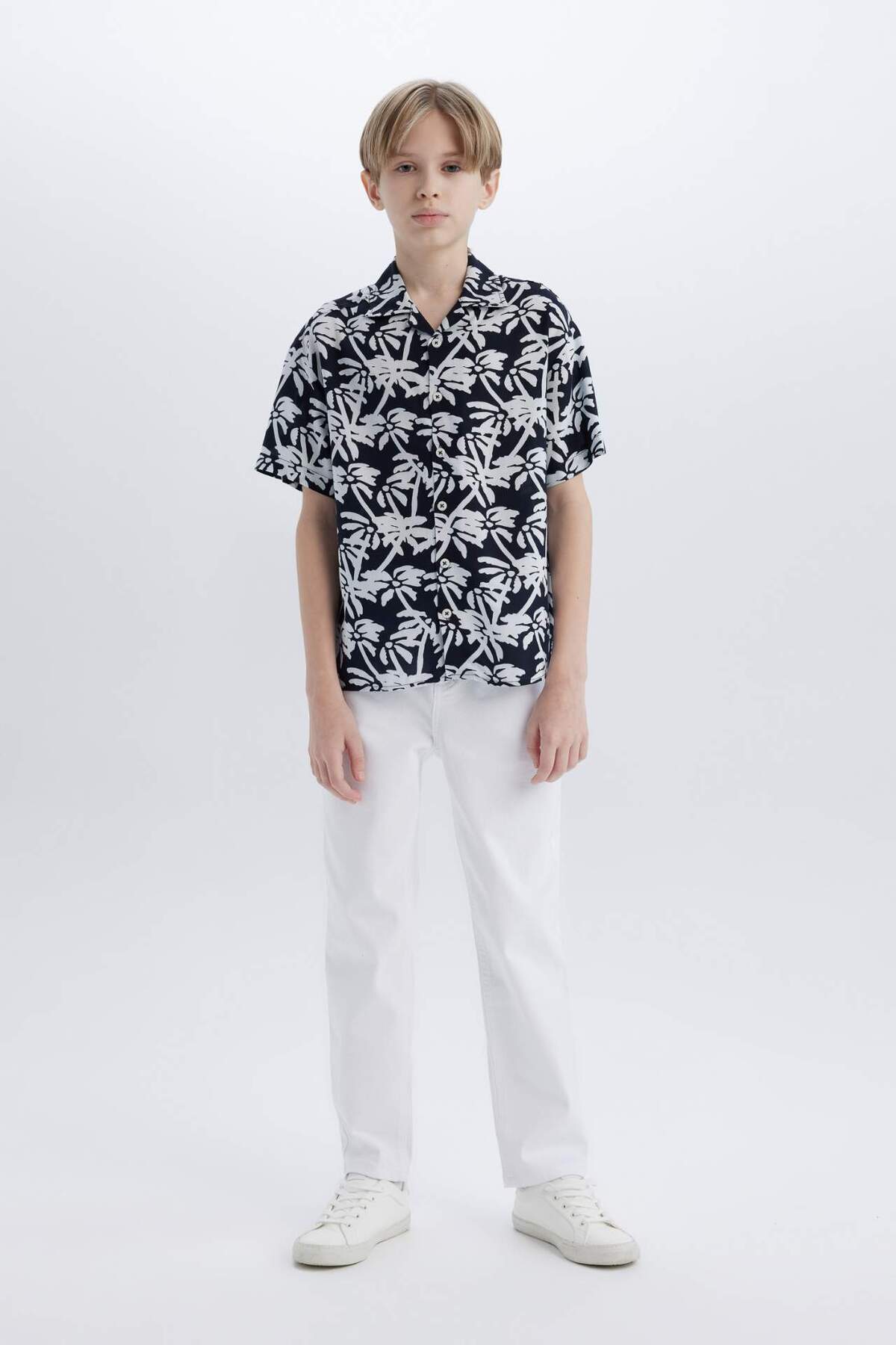 Erkek Çocuk Oversize Geniş Kalıp Polo Yaka Desenli Kısa Kollu Gömlek E2969A825SM Erkek Çocuk Oversize Geniş Kalıp Polo Yaka Desenli Kısa Kollu Gömlek E2969A825SM 13-14 Yaş
