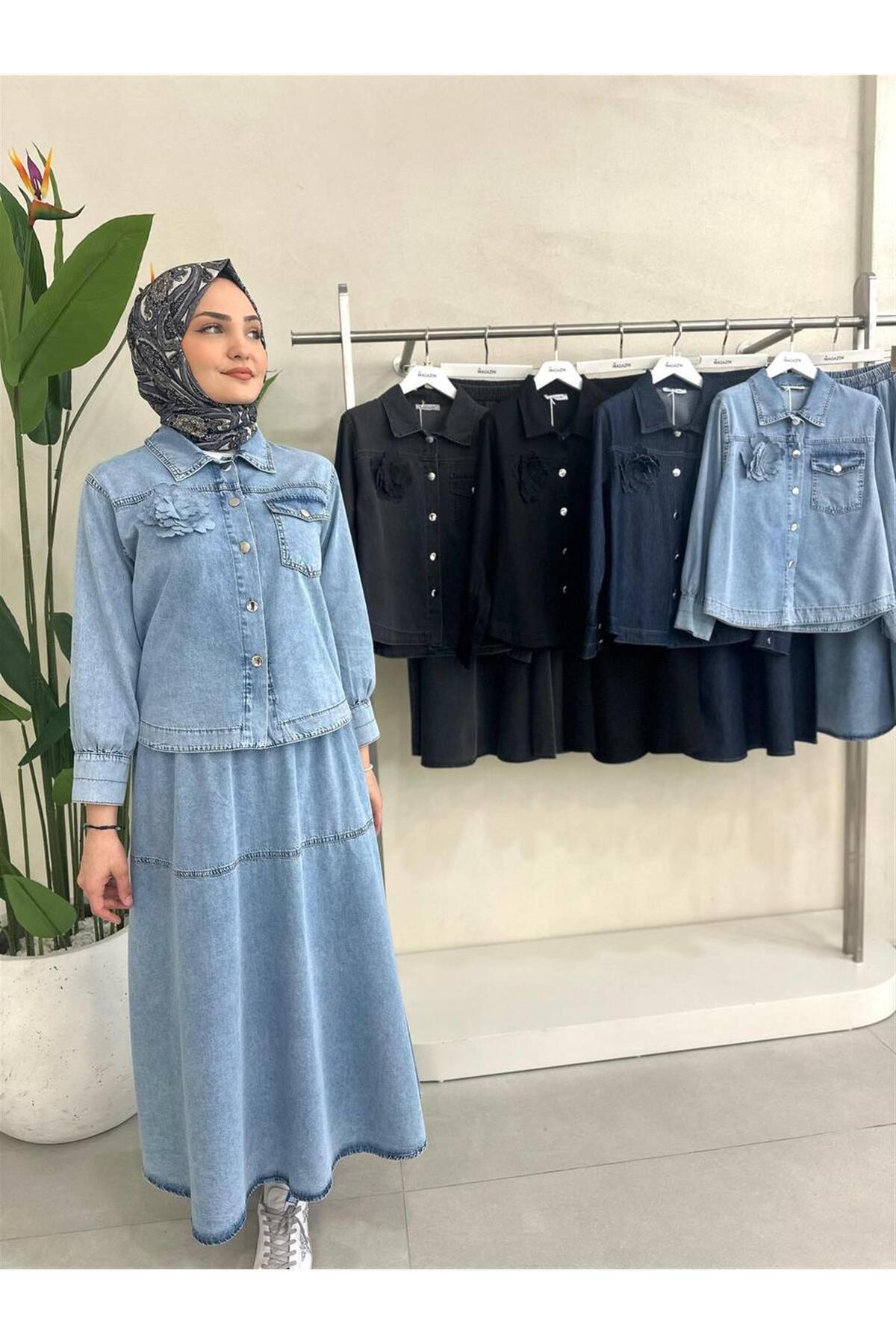 Fırfırlı Denim Etekli Takım 6120 - MAVİ Fırfırlı Denim Etekli Takım 6120 - MAVİ 496873-87035611150 L