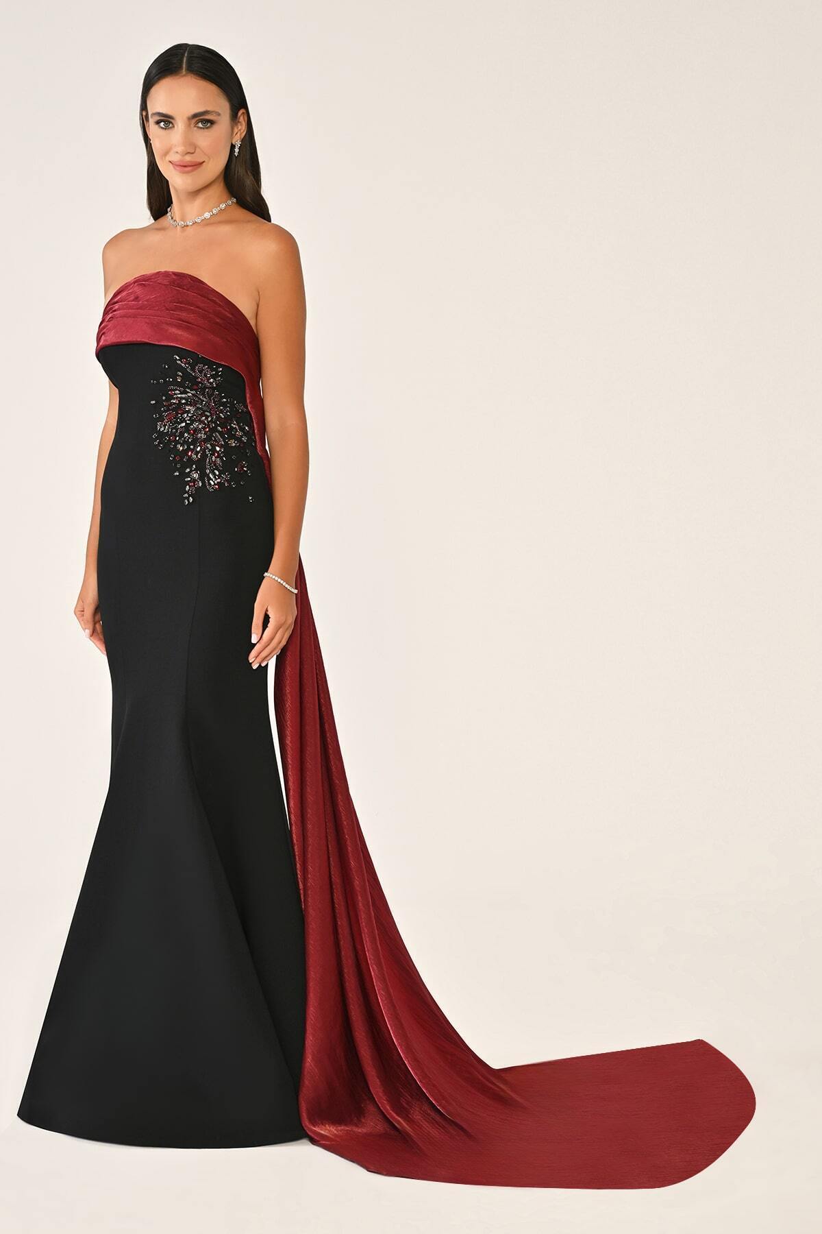 Düşük Omuz Üst Aksesuarlı Kuyruklu Krep Abiye Elbise Düşük Omuz Üst Aksesuarlı Kuyruklu Krep Abiye Elbise 6926 48