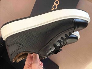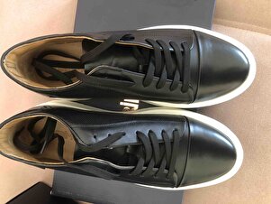 Erkek Siyah Bağcıklı Kalın Tabanlı Deri Sneaker 25SFD610618 Erkek Siyah Bağcıklı Kalın Tabanlı Deri Sneaker 25SFD610618 45