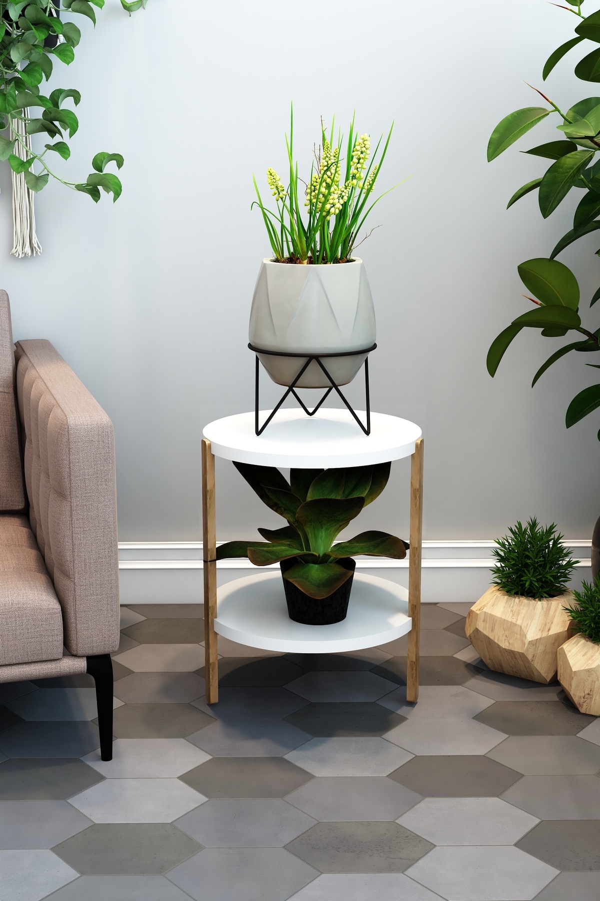 Miray Beyaz 2 Katlı Yuvarlak Ahşap Çok Amaçlı Sehpa / Saksılık-Çiçeklik / Dekoratif Raf Miray Beyaz 2 Katlı Yuvarlak Ahşap Çok Amaçlı Sehpa / Saksılık-Çiçeklik / Dekoratif Raf JS-9188 تک سایز