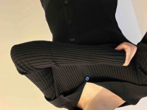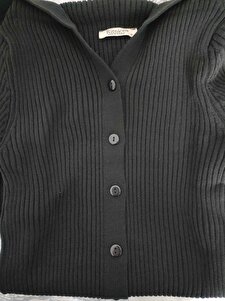 Kadın Terra Fitilli Siyah Düğmeli Triko Hırka Kadın Terra Fitilli Siyah Düğmeli Triko Hırka 1443 L
