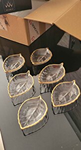 MİNİ Gold Yaldızlı 6'lı Yaprak Model Cam Sosluk Lokumluk Sunumluk Set MİNİ Gold Yaldızlı 6'lı Yaprak Model Cam Sosluk Lokumluk Sunumluk Set WOW-LQ6-GOLD تک سایز