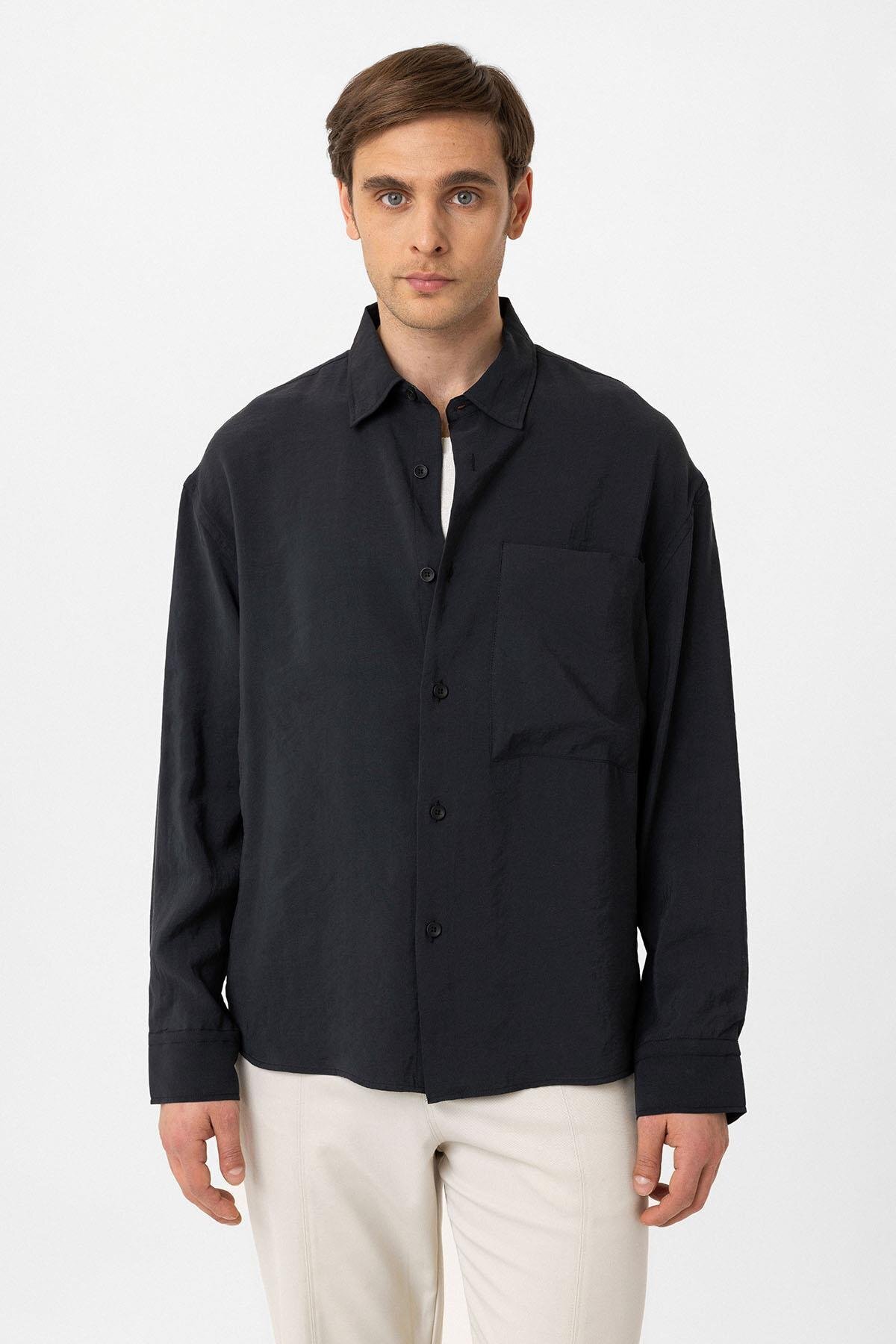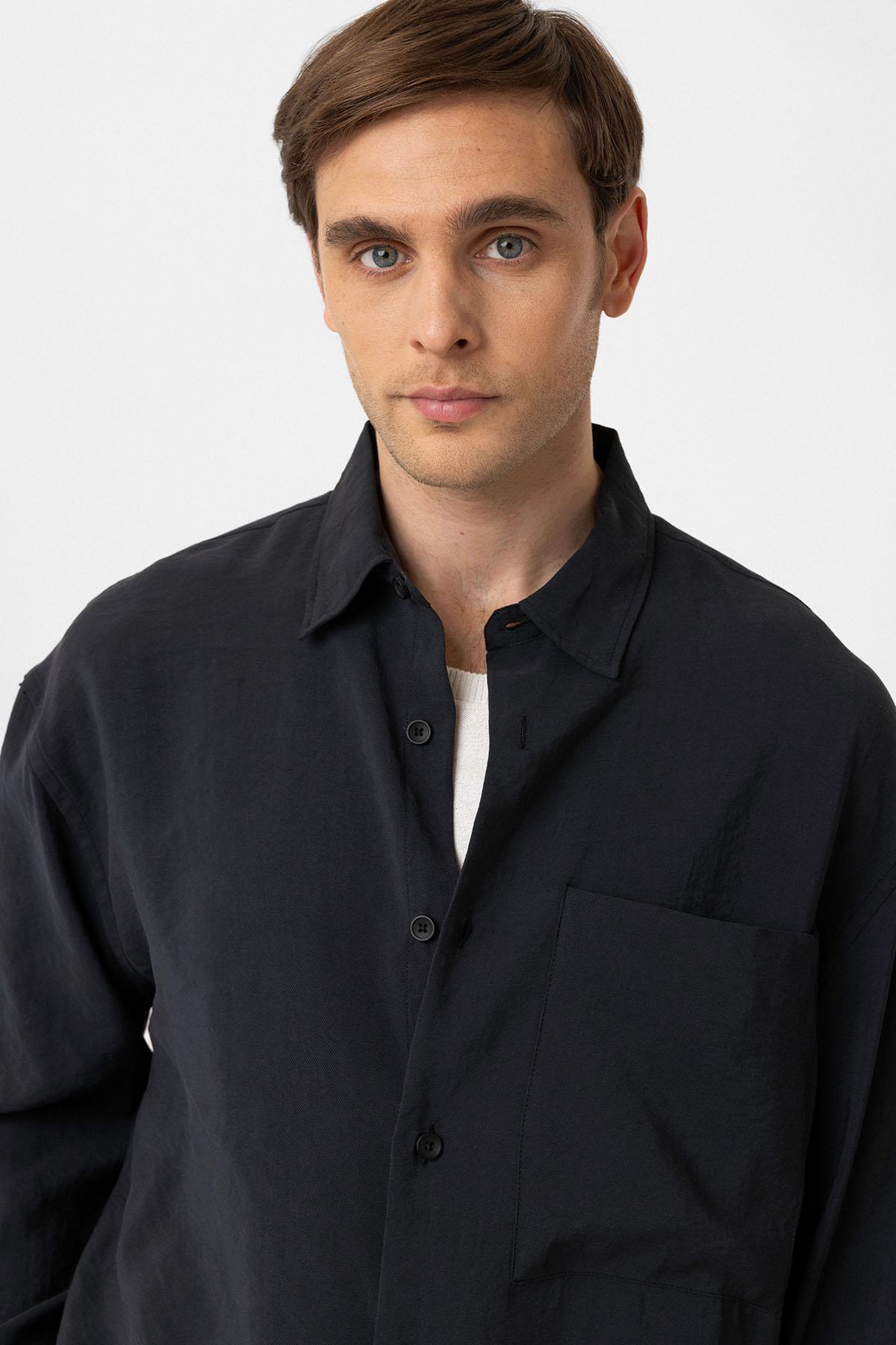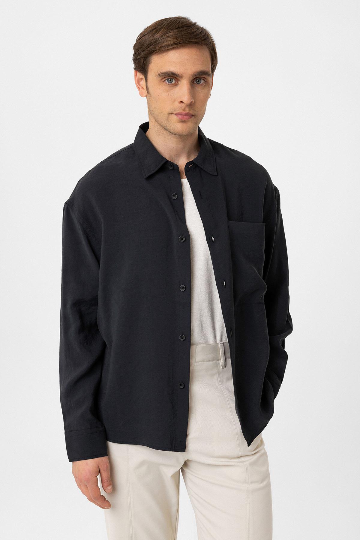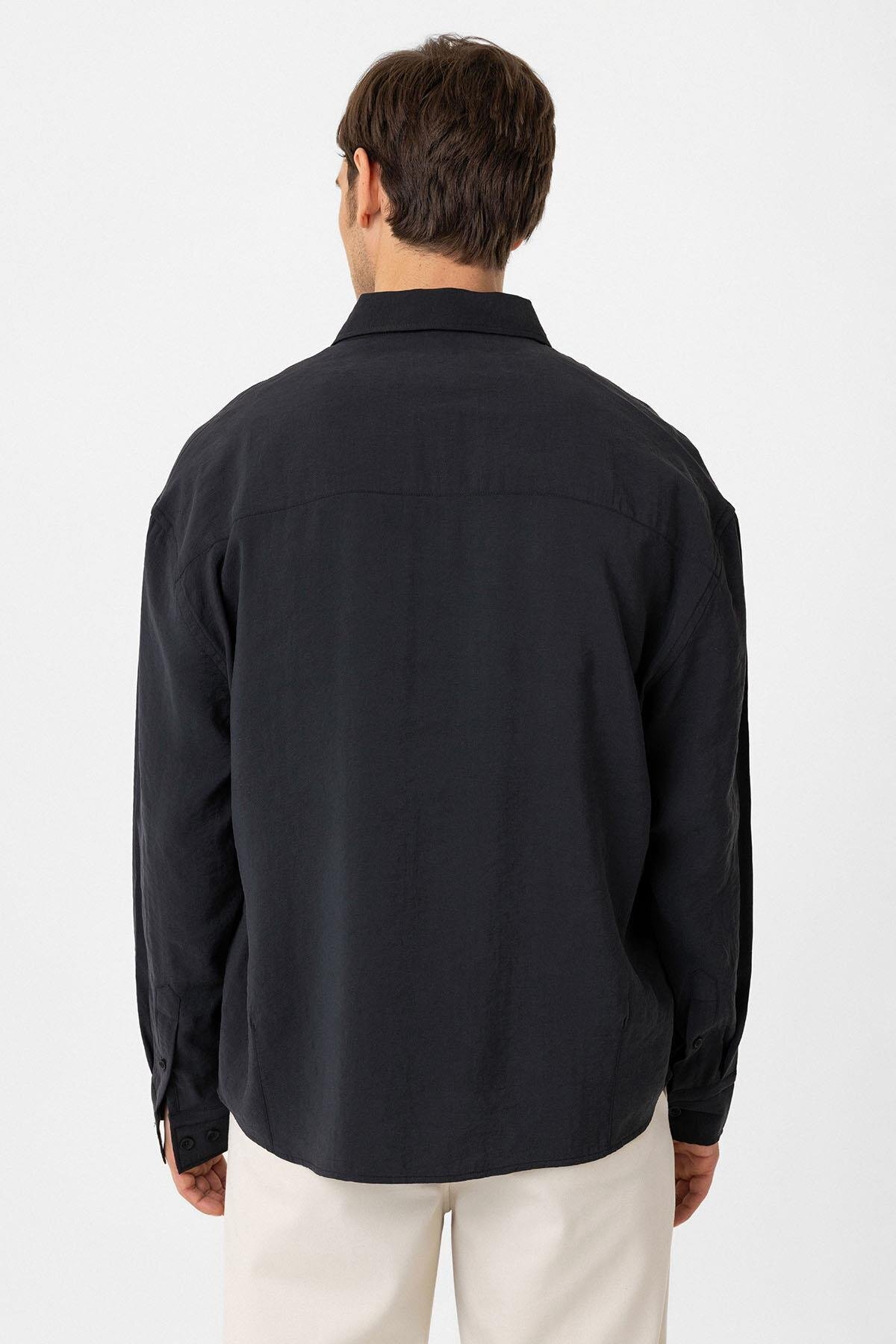 Siyah Relax Fit Modal Kumaş Erkek Gömlek Siyah Relax Fit Modal Kumaş Erkek Gömlek A25Y10101 XL