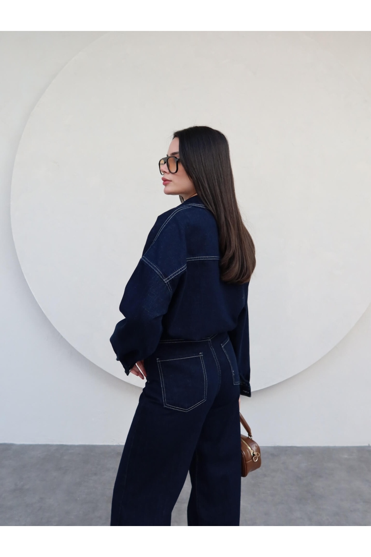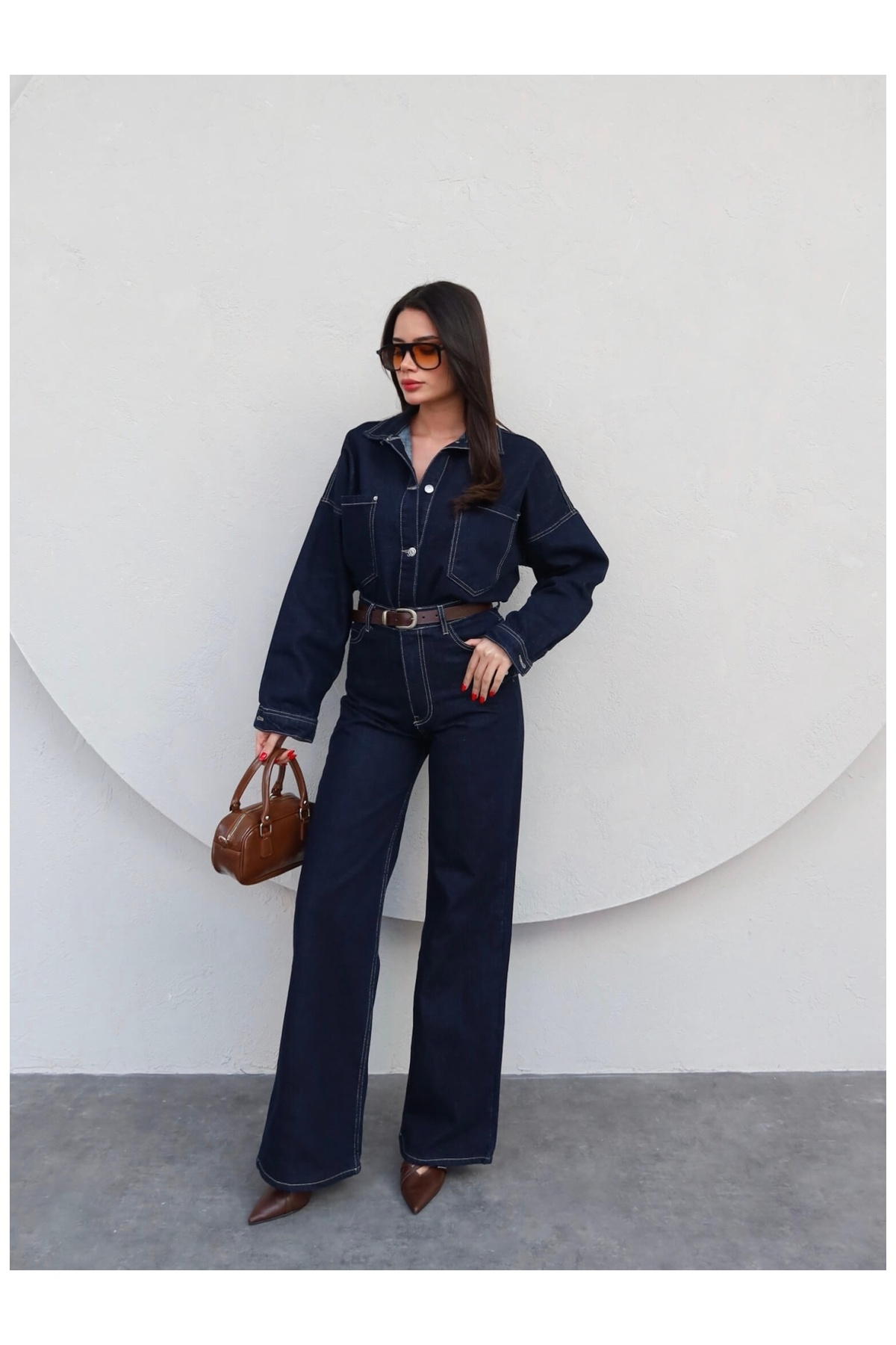 Önü Düğmeli Cepli Oversize Kot Takım Önü Düğmeli Cepli Oversize Kot Takım EH-5362 L