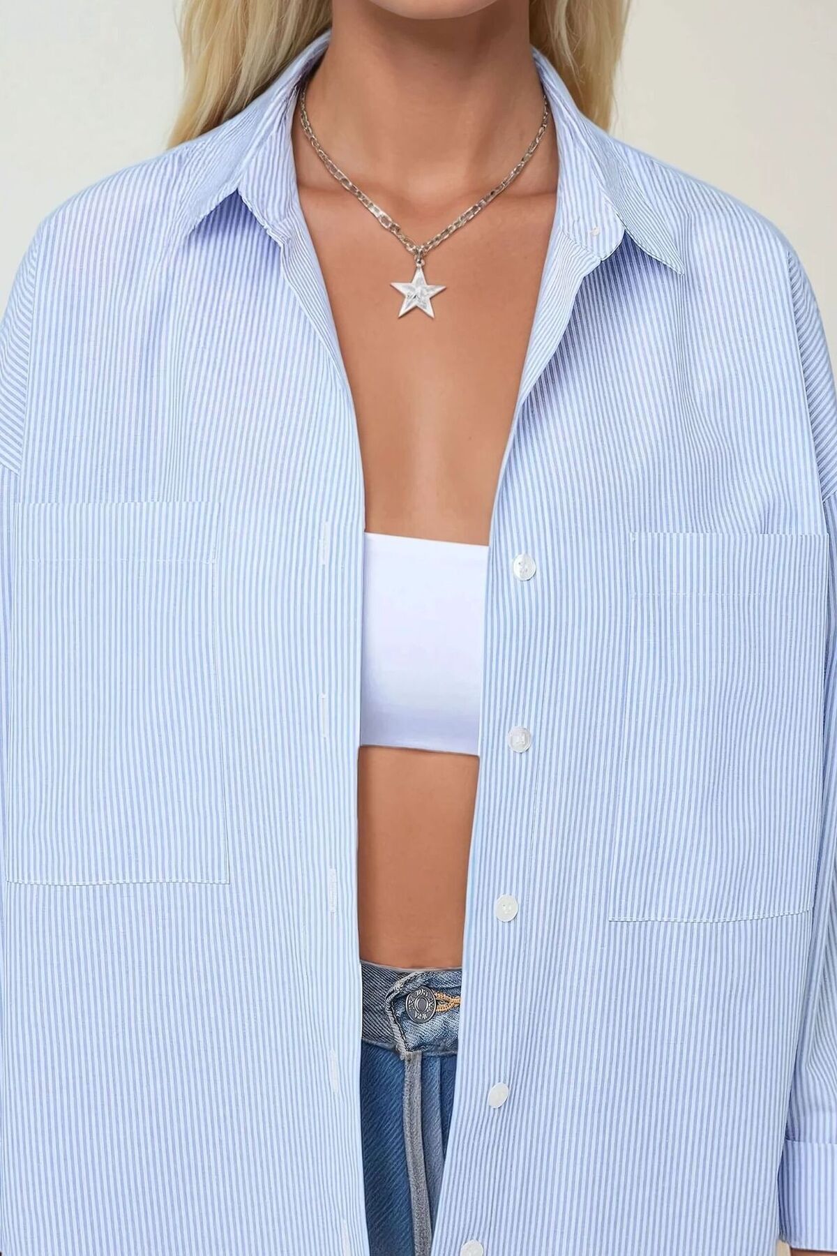 Çizgili Uzun Kollu Regular Fit Rahat Gömlek Çizgili Uzun Kollu Regular Fit Rahat Gömlek M6HSUZQ2 2XL