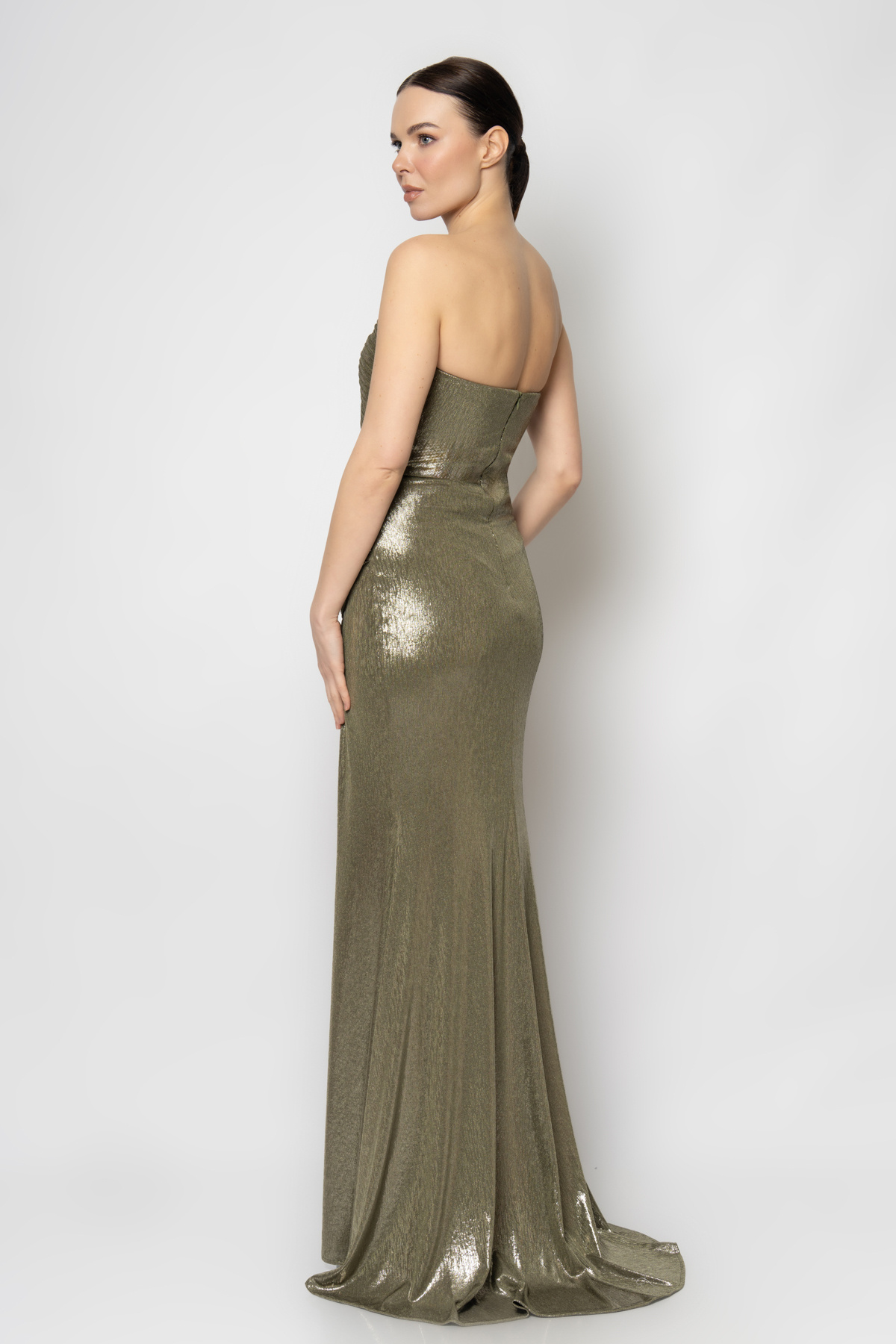 Tek omuzdan bele asimetrik büzgülü straplez abiye elbise Tek omuzdan bele asimetrik büzgülü straplez abiye elbise 6320 44