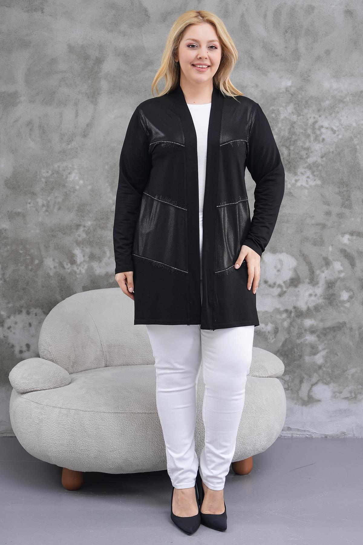Büyük Beden Taş Baskılı Parlak Kumaş Hırka Büyük Beden Taş Baskılı Parlak Kumaş Hırka 5K-HRK00023 54-56