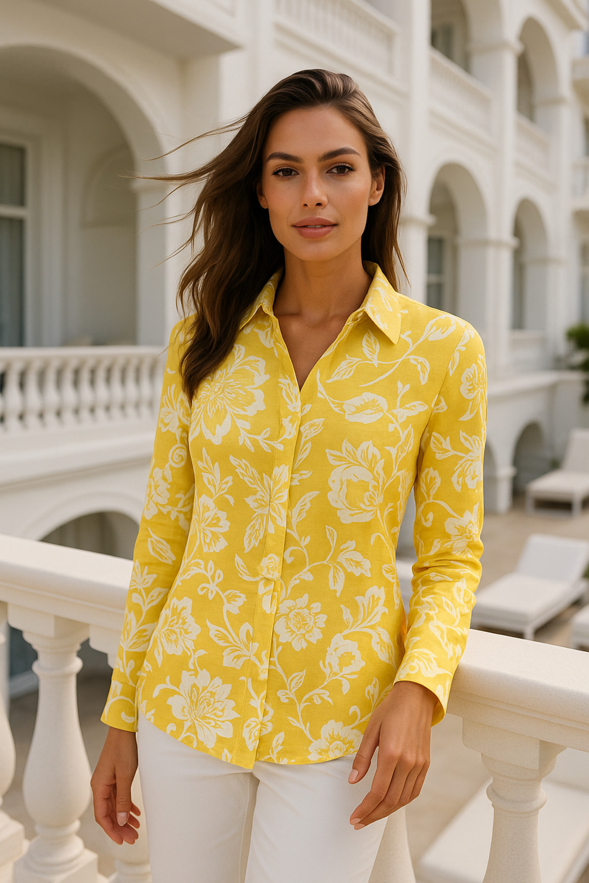 Desenli Salaş Keten Gömlek Bej Desenli Salaş Keten Gömlek Bej 250121GML XL