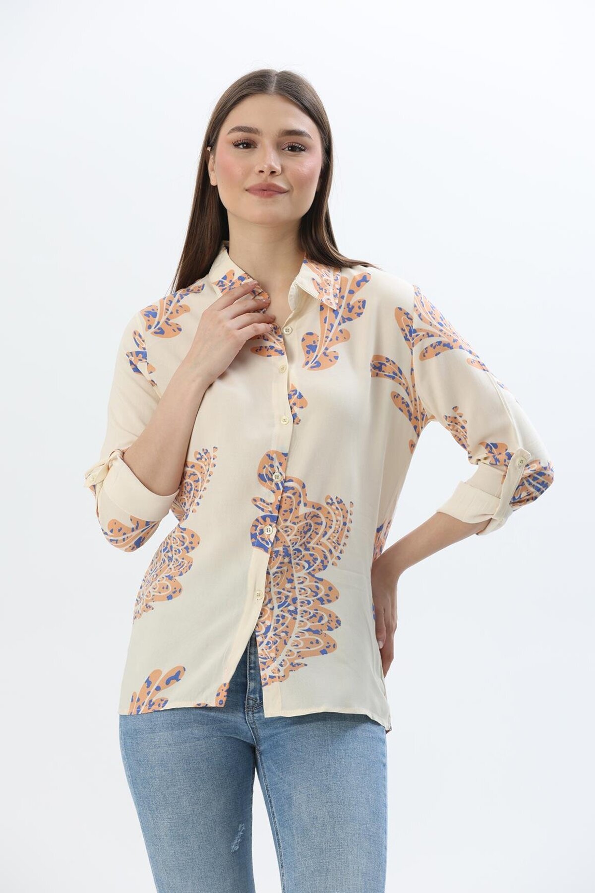 Desenli Salaş Keten Gömlek Hardal Desenli Salaş Keten Gömlek Hardal 250121GML XL