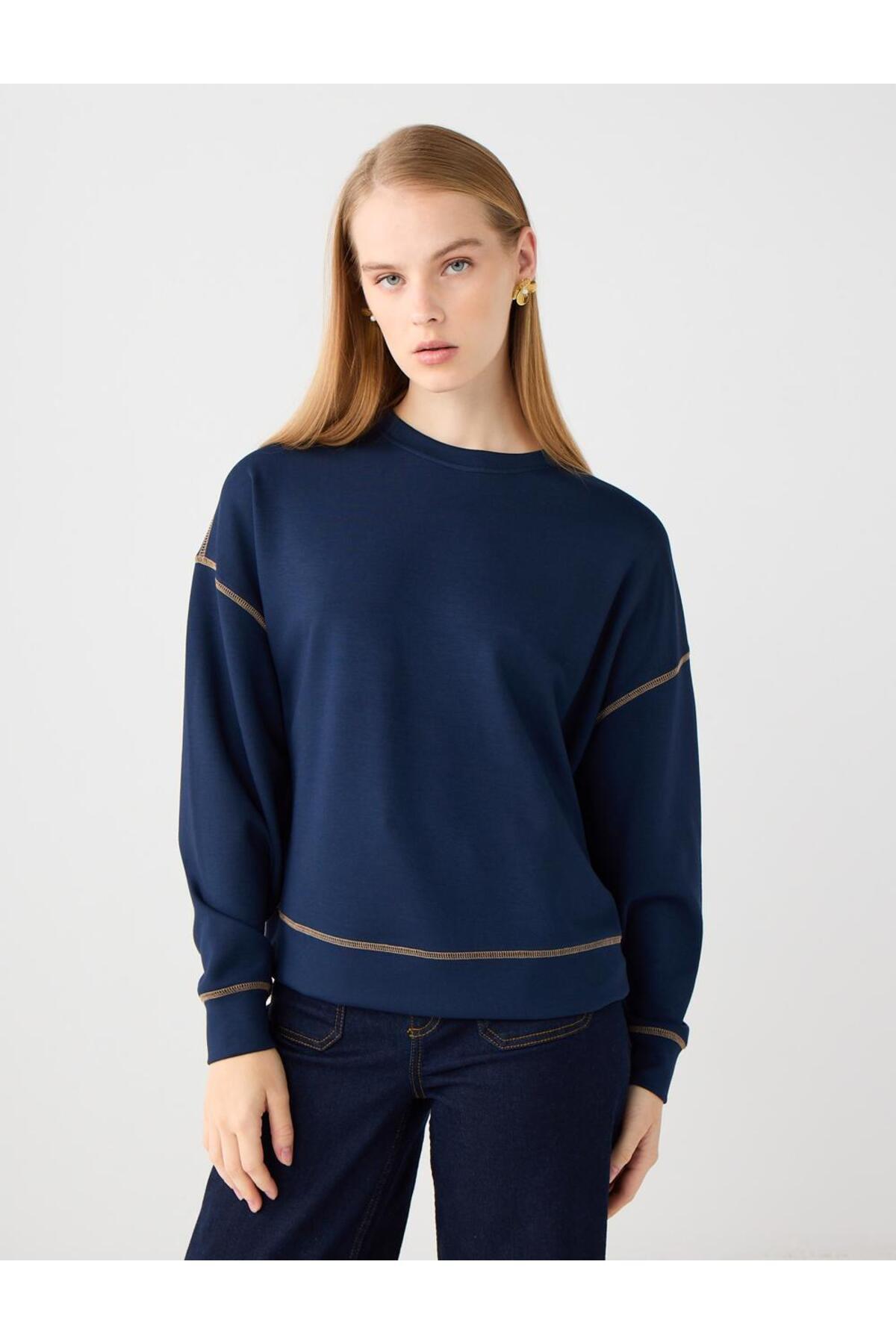 Lacivert Rahat Kesim Kapüşonlu Kadife Sweatshirt Lacivert Rahat Kesim Kapüşonlu Kadife Sweatshirt 4WW361243 Standart