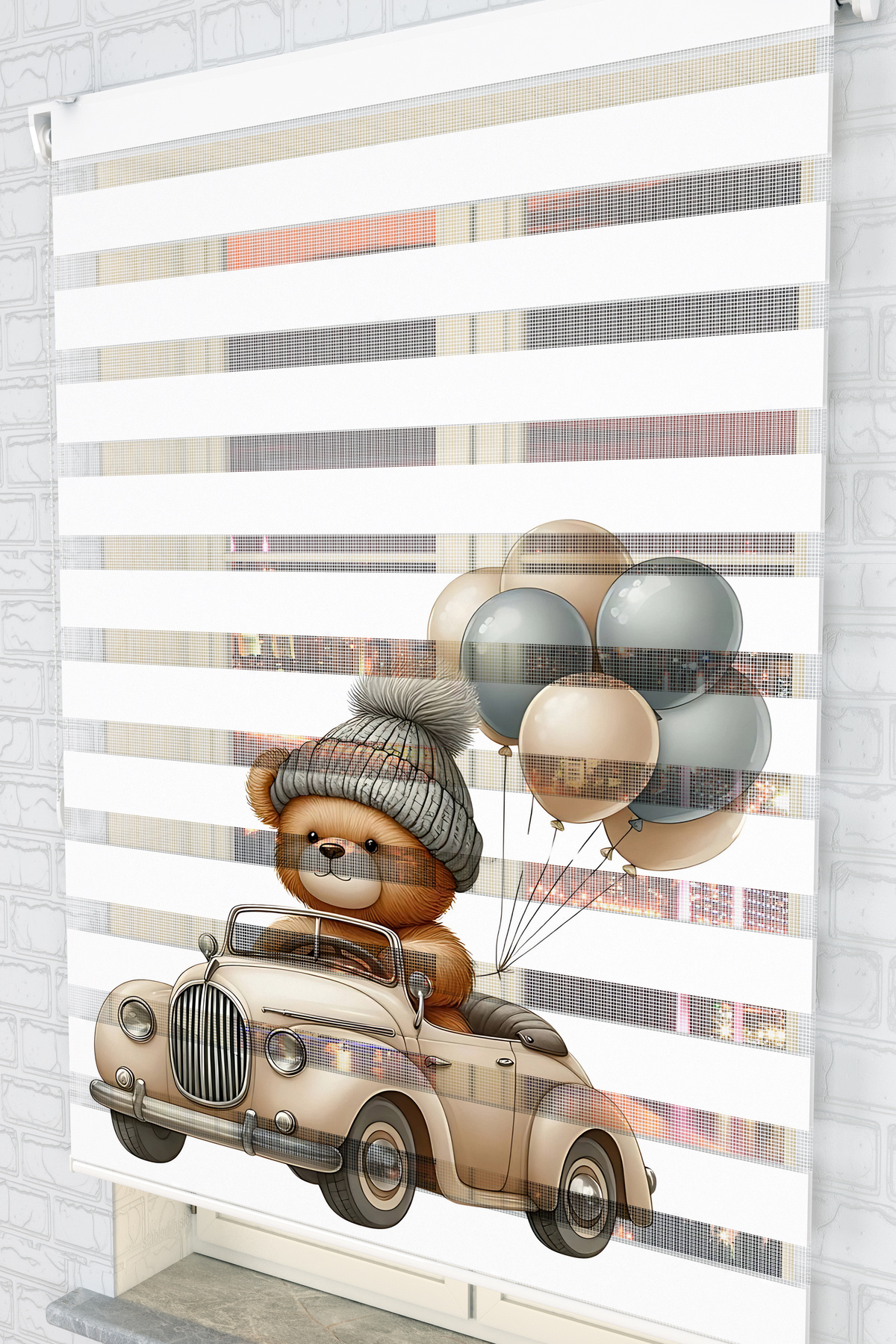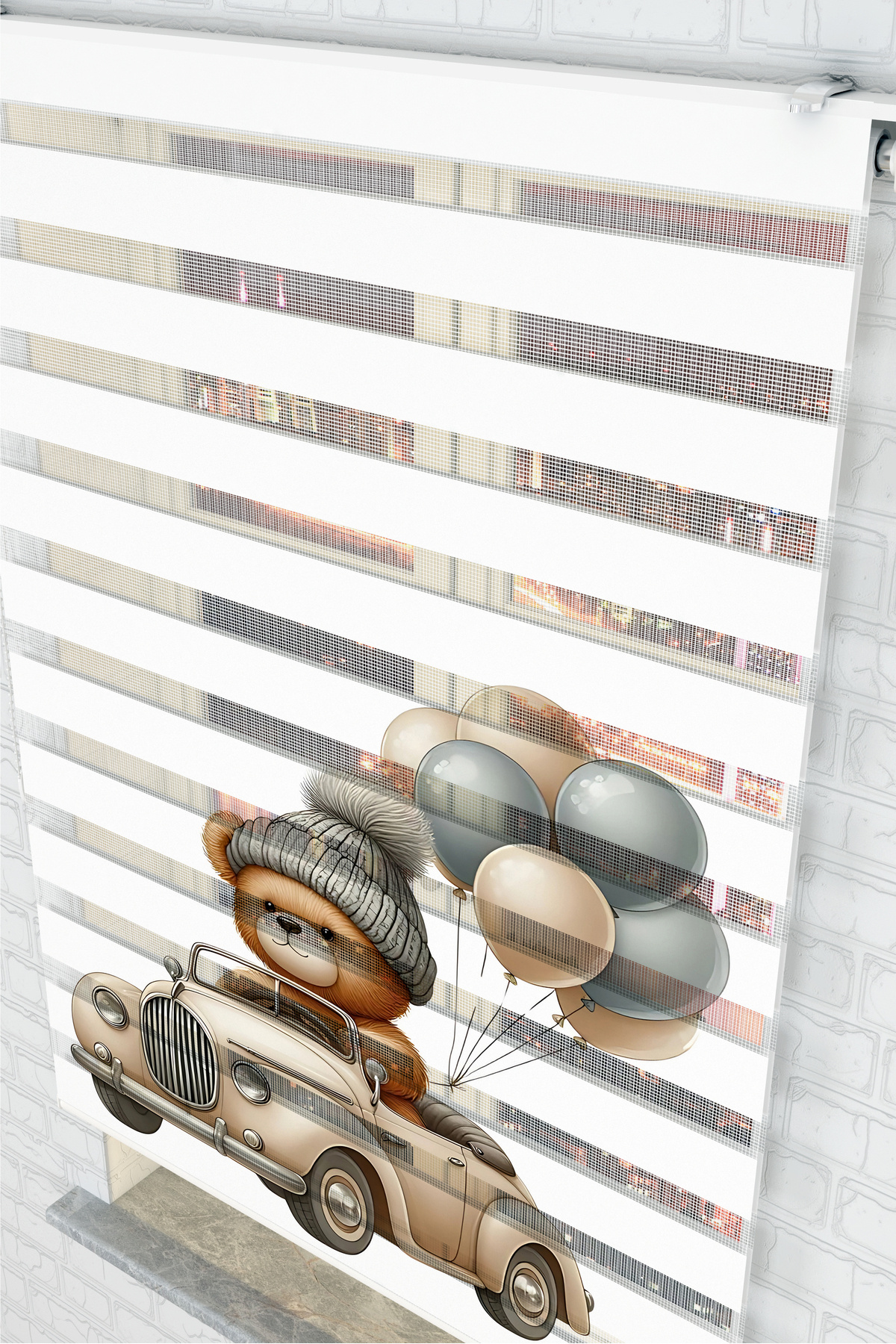 Ayıcık ve Balonlu Araba Desenli Baskılı Zebra Stor Perde - Çocuk Odası Baskılı Perde Ayıcık ve Balonlu Araba Desenli Baskılı Zebra Stor Perde - Çocuk Odası Baskılı Perde Akel-1019 220 x 220