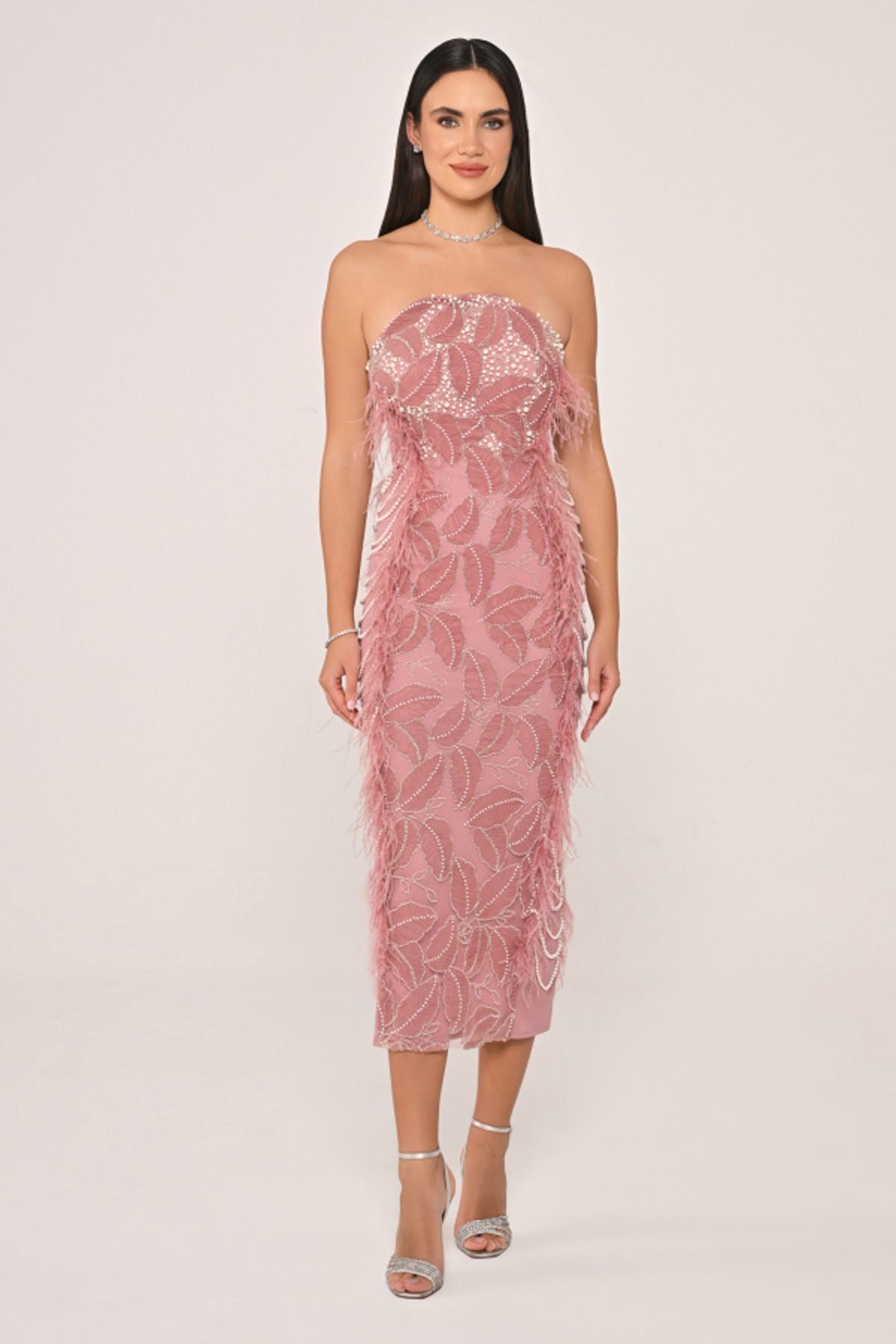 Straplez Boncuklu Otrişli Midi BOY ABİYE Elbise Straplez Boncuklu Otrişli Midi BOY ABİYE Elbise 6929 44